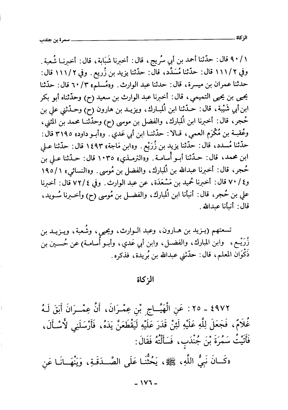 ١/ ٩٠ (٣٣٢) قال: حدثنا أحمد بن أَبي سُريج، قال: أخبرنا شَبَابة، قال: أخبرنا شُعبة. وفي ٢/ ١١١ (١٣٣١) قال: حدثنا مُسَدَّد، حدثنا يزيد بن زرَيع. وفي ٢/ ١١١ (١٣٣٢) قال: حدثنا عمران بن مَيسرة، حدثنا عَبْد الوارث. و"مسلم" ٣/ ٦٠ (٢١٩٥) قال: حدثنا يحيى بن يحيى التميمي، أخبرنا عبد الوارث بن سعيد. وفي (٢١٩٦) قال: وحدثنا هـ أبو بكر بن أَبي شَيبة، حدثنا. ابن المُبارك، ويزيد بن هارون (ح) وحدّثني علي بن حُجر، أخبرنا ابن المُبارك، والفضل بن موسى قال: وحدثنا محمد بن المثني، وعُقبة بن مُكرَم العَمِّي، قالا: حدثنا ابن أَبي عَدى. و"أبو داود" ٣١٩٥ قال: هلا حدثنا مُسدد، حدثنا يزيد بن زرَيع. و"ابن ماجة" ١٤٩٣ قال: حدثنا علي بن محمد , حدثنا أبو اسامة. والتِّرْمِذِيّ" ١٠٣٥ قال: حدثنا علي بن حُجر، أخبرنا عبد الله بن المُبارك، والفَضل بن موسى. و"النَّسَائي" ١/ ١٩٥ و ٤/ ٧٠ , وفي "الكبرى" ٢١١٤ قال: أخبرنا حُميد بن مَسعَدَة، عن عبد الوارث. وفي ٤/ ٧٢، وفي "الكبرى" ٢١١٧ قال: أخبرنا علي بن حُجر، قال: أنبأنا ابن المُبارك، والفَضل بن مُوسى (ح) وأخبرنا سُويد، قال: أنبأنا عبد الله.