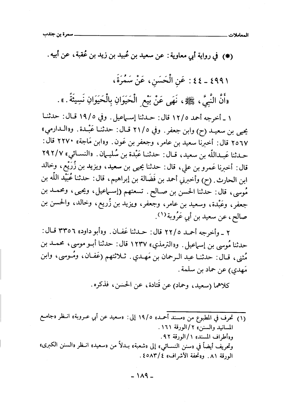 أخرجه أحمد ٥/ ١٢ (٢٠٤٠٥) و ٥/ ٢١ (٢٠٥٠٠) قال: حدثنا عَبدة، حدثنا سَعِيد. وفي ٩/ ١٥ (٢٠٤٧٨) قال: حدثنا يحيى بن سعيد، عن ابن أَبي عَرُوبة (ح) وابن جعفر، حدثنا سَعِيد بن أَبي عَرُوبة. وفي ٥/ ٢٢ (٢٠٥٢٨) قال: حدثنا عفّان، حدثنا حماد. و"الدارمي" ٢٥٦٤ قال: أخبرنا سعيد بن عامر، وجعفر بن عَون، عن سعيد. و"أبو داود" ٣٣٥٦ قال: حدثنا موسى بن إسماعيل، حدثنا حماد. و"ابن ماجة" ٢٢٧٠ قال: حدثنا عَبْد الله بن سعيد، حدثنا عَبدة بن سُليمان، عن سعيد بن أَبي عَرُوبة. والتِّرْمِذِيّ" ١٢٣٧ قال: حدثنا أبو موسى محمد بن مُثنى، حدثنا عَبْد الرحمن بن مَهدي، عن حماد بن سلمة. و"النَّسَائي" ٧/ ٢٩٢، وفي "الكبرى" ٦١٧٠ قال: أخبرنا عَمرو بن علي , قال: حدثنا يحيى بن سعيد، ويزيد بن زريع، وخالد بن الحارث. قالوا: حدثنا سعيد (ح) وأخبرني أحمد بن فَضَالة بن إبراهيم , قال: حدثنا عُبَيْد الله بن موسى , قال: حدثنا الحسن بن صالح، عن ابن أَبي عَرُوبة.