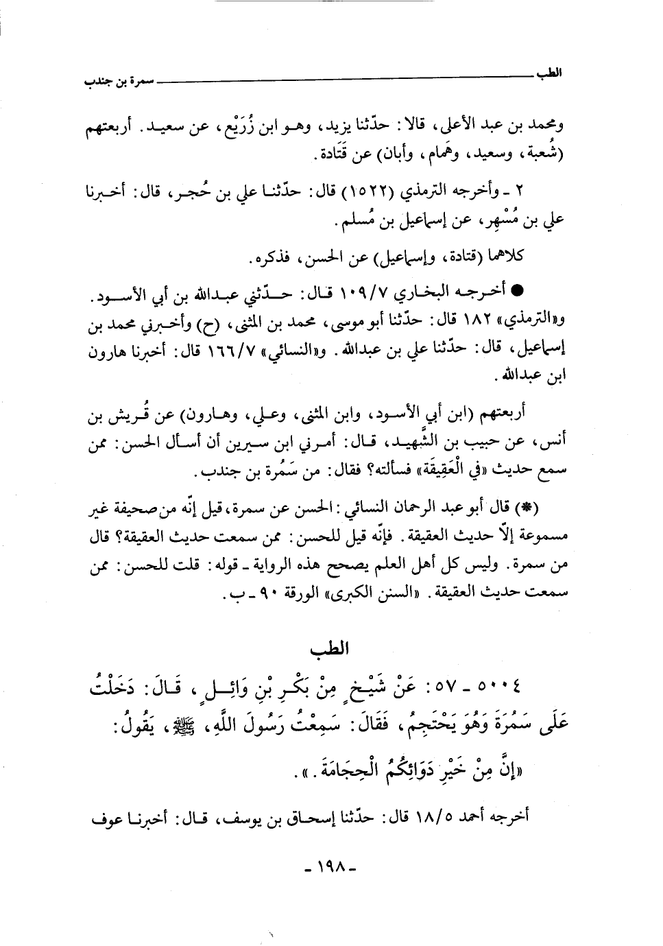 (*) قال أبو عبد الرحمن النسائي: الحسن عن سمرة، قيل إنّه من صحيفة غير مسموعة إلاّ حديث العقيقة. فإنّه قيل للحسن: ممن سمعتَ حديث العقيقة قال: من سمرة.