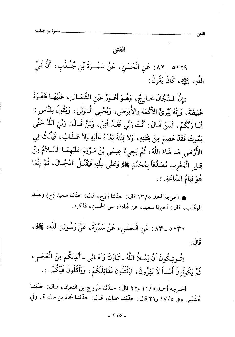 ٥٠٢٩ - عَنِ الْحَسَنِ , عنْ سَمُرَةَ بن جُنْدُبٍ , أَنَّ نَبِىَّ الله , صلى الله عليه وسلم , كَانَ يَقُولُ: