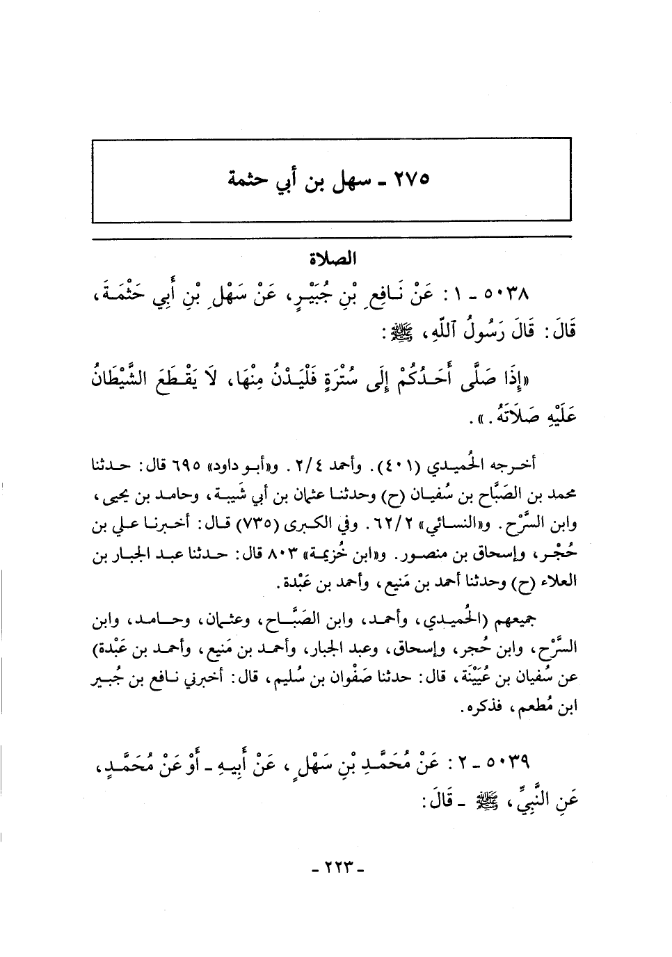 ٥٠٣٨ - عَن نَافِعِ بن جُبَيرٍ، عَنْ سَهْلِ بْنِ أَبي سهل بن أبي حثمة , قال: قال سُولُ اَللًهِ، صلى الله عليه وسلم: