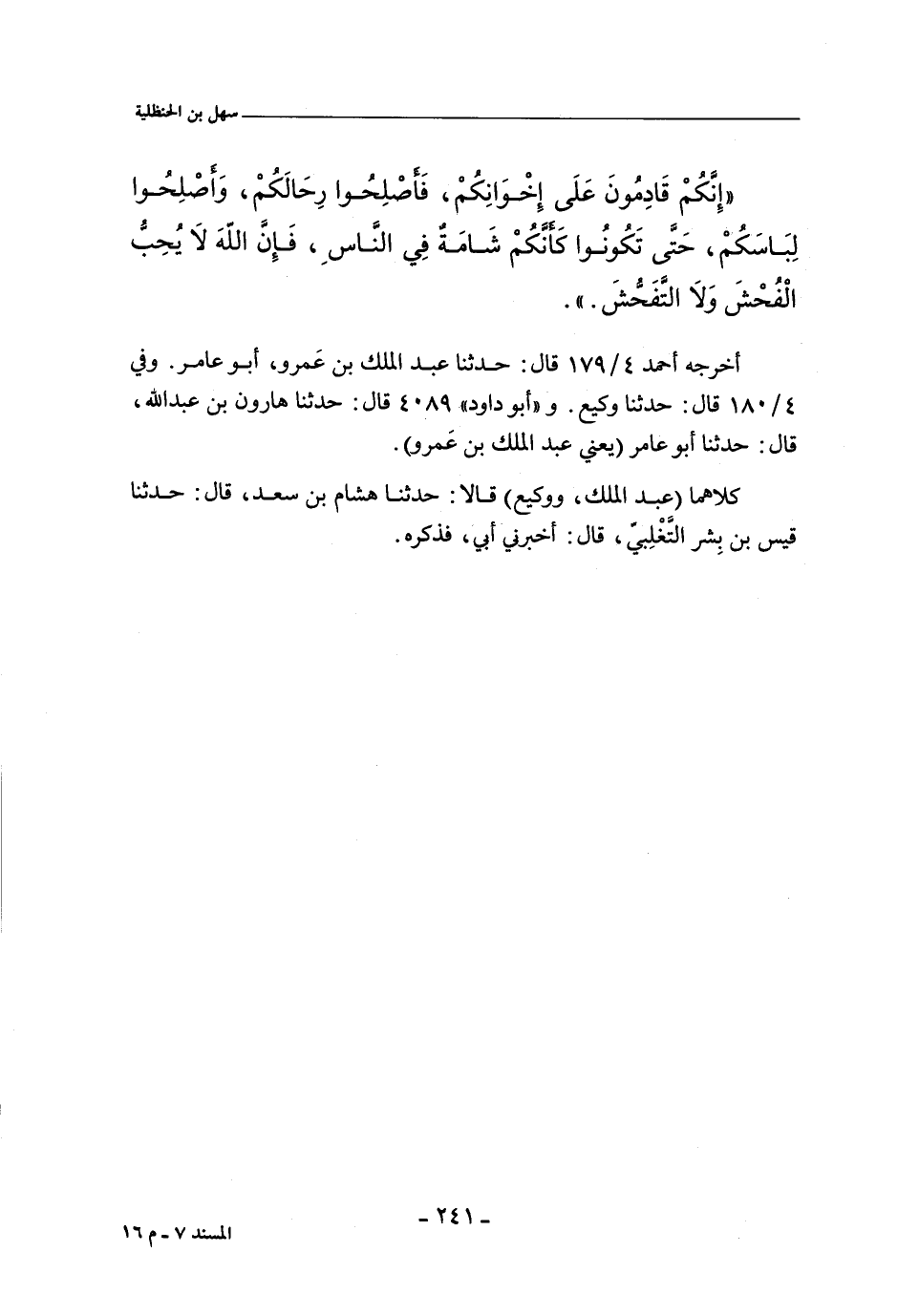 إِنَّكُمْ قَادِمُونَ عَلَى إِخْوَانِكُمْ , فَأَصْلِحُوا رِحَالَكُمْ , وَأَصْلِحُوا لِبَاسَكُمْ , حتى تكون كأنكم شامة في الناس , فَإِنَّ الله لَا يُحِبُّ الْفُحْشَ وَلَا التَّفَحُّشَ.