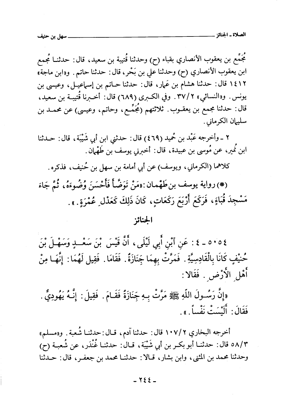 ٥٠٥٤ - عن بن أبي ليلى , أن قيس بن سعد وسهل بن حنيف كانا بالقادسية , فمرت بهما جنازة , فقاما , فقيل لهما: إنها من أهل الأرض , فقالا: