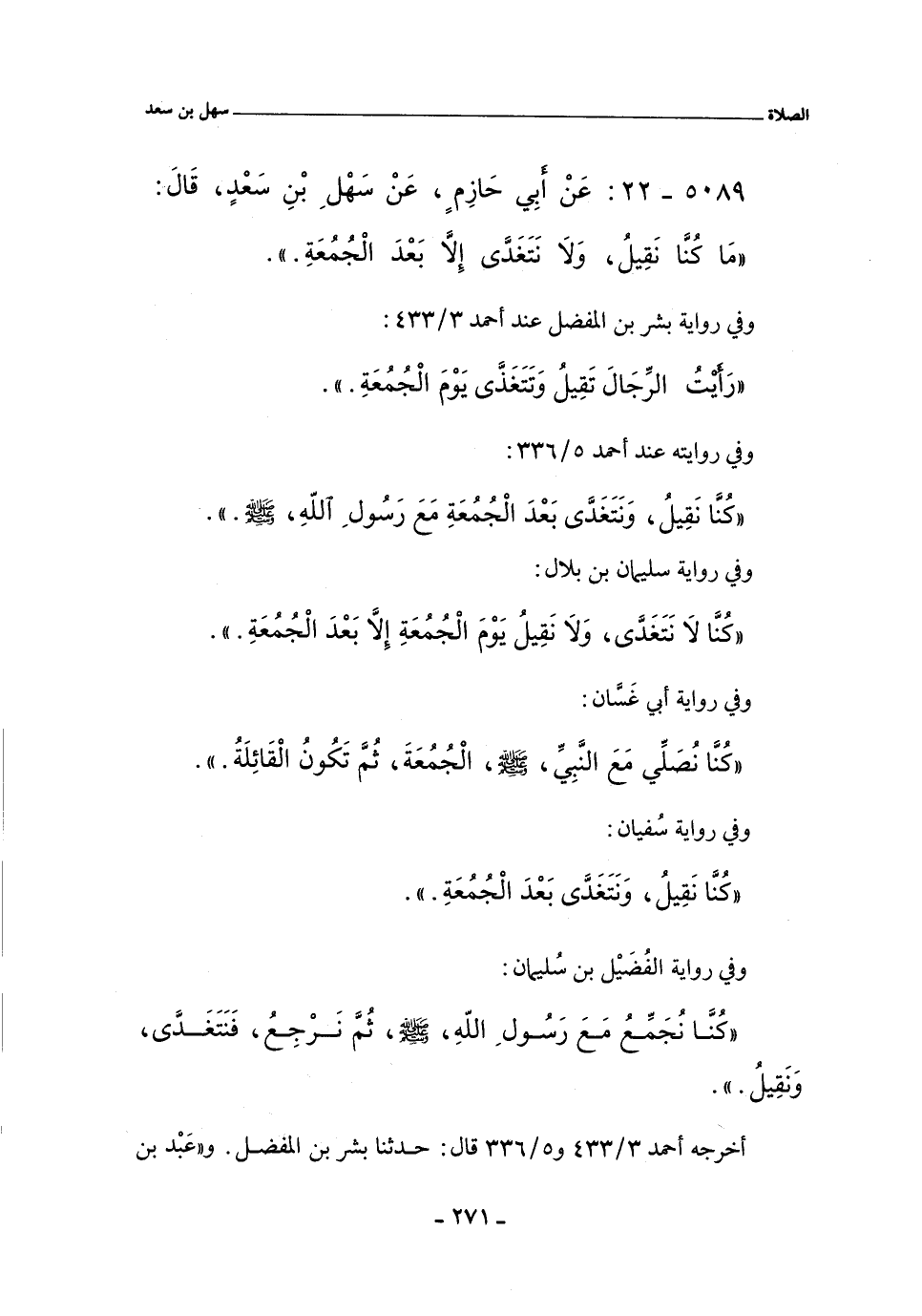 (*) وفي رواية: رَأَيْتُ الرجَالَ نَقِيلُ وَنَتَغَذى يَومَ الْجُمُعَةِ.