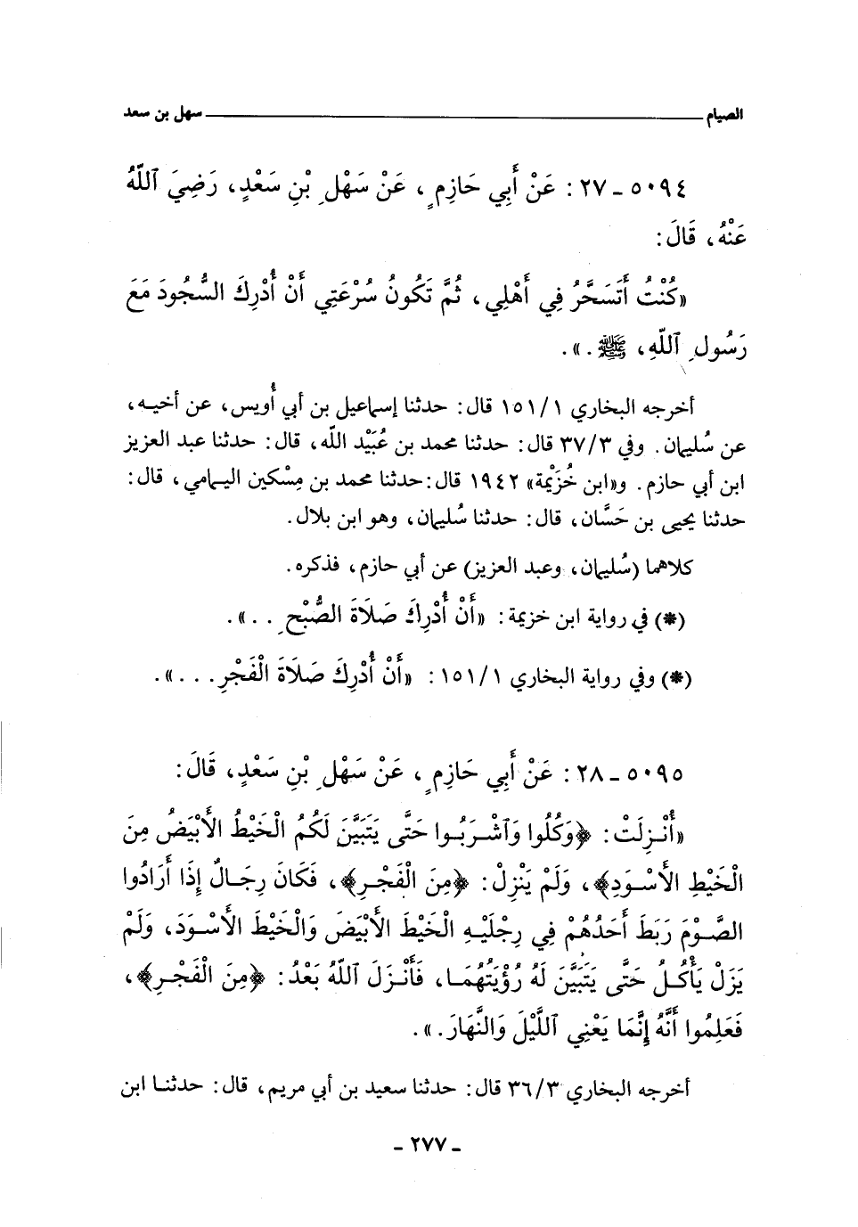 أخرجه البخاري ١/ ١٥١ (٥٧٧) قال: حدثنا إسماعيل بن أَبي أوُيس، عن أخيه، عن سُليمان. وفي ٣/ ٤٧ (١٩٢٠) قال: حدثنا محمد بن عُبيد الله، حدثنا عَبْد العزيز بن أَبي حازم. و"ابن خزيمة" ١٩٤٢ قال: حدثنا محمد بن مِسكين اليمامي، حدثنا يحيى بن حَسان، حدثنا سُلَيْمَان، وهو ابن بلال.