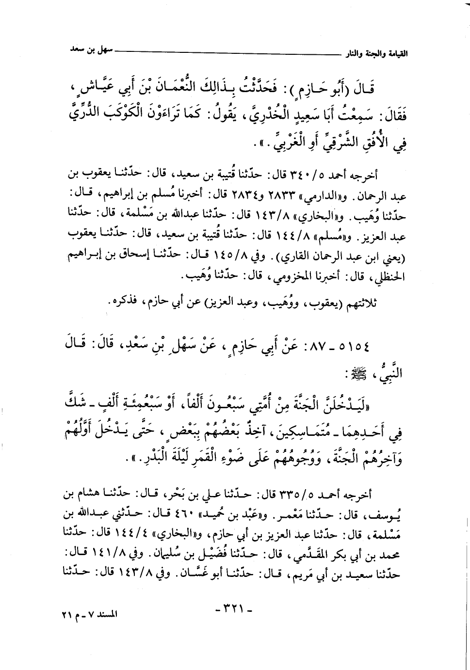 ٥١٥٤ - عن أبي حَازِمٍ , عَنْ سَهْلِ بْنِ سَعْدٍ , قَالَ: قَالَ النَّبِيُّ صلى الله عليه وسلم: