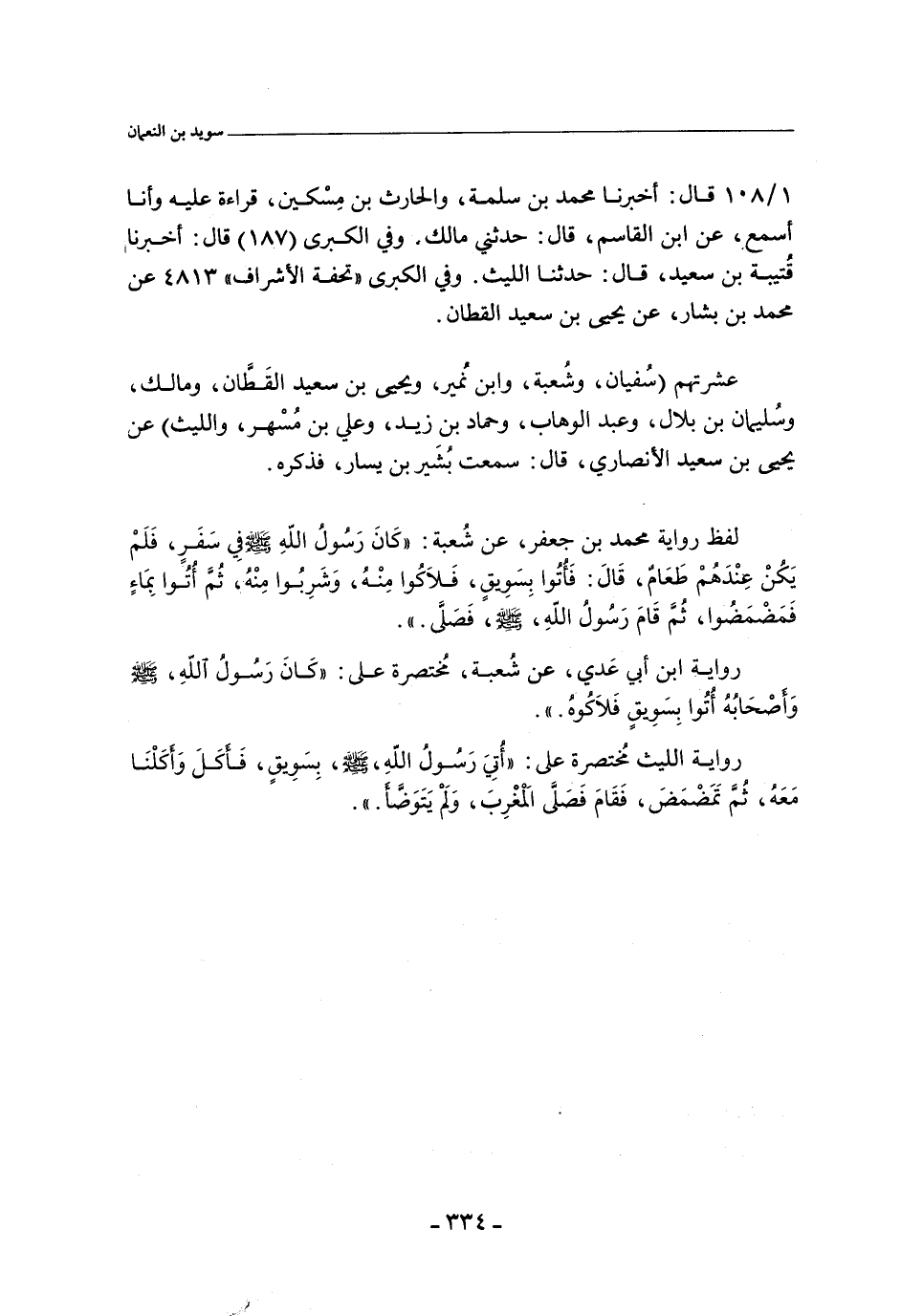 (*) في رواية شعبة، عند أحمد، قال بُشير بن يسار: سمعتُ سويد بن النعمان، رجلآ من اْصحاب رسول اللهصلى الله عليه وسلم، من أصحاب الشجرة.