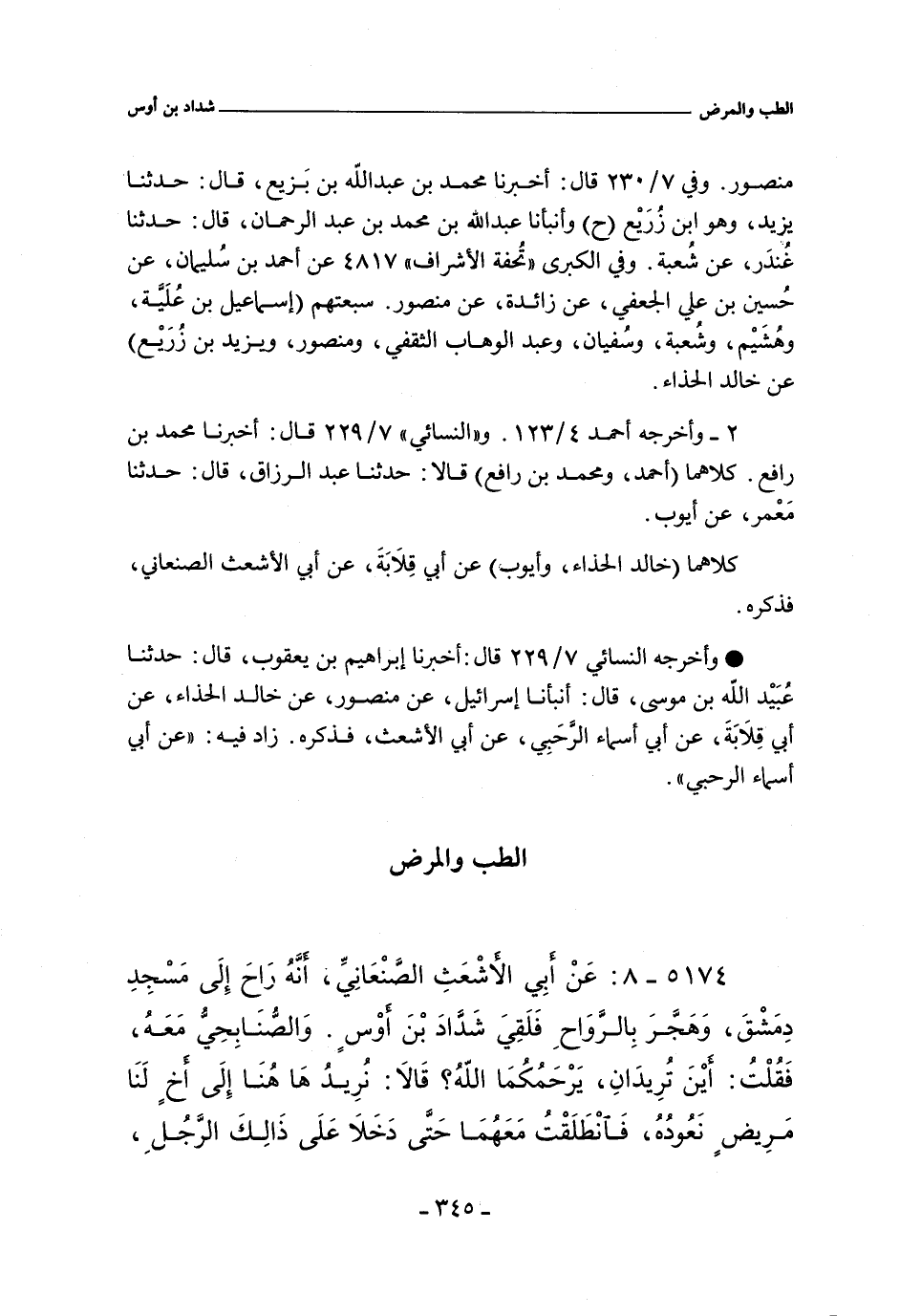 مَنصور. وفي ٧/ ٥ ٢٣، وفي "الكبرى" ٤٤٨٨ قال: أخبرنا محمد بن عبد الله بن بَزيع , قال: حدثنا يزيد، وهو ابن زُرَيع (ح) وأنبأنا عبد الله بن محمد بن عبد الرحمن , قال: حدثنا غندر، عن شُعبة. وفي "الكبرى" ٨٦٠٤ قال: أخبرنا أحمد بن سُليمان , قال: حدثنا حُسين بن علي، عن زائدة، عن مَنصور.