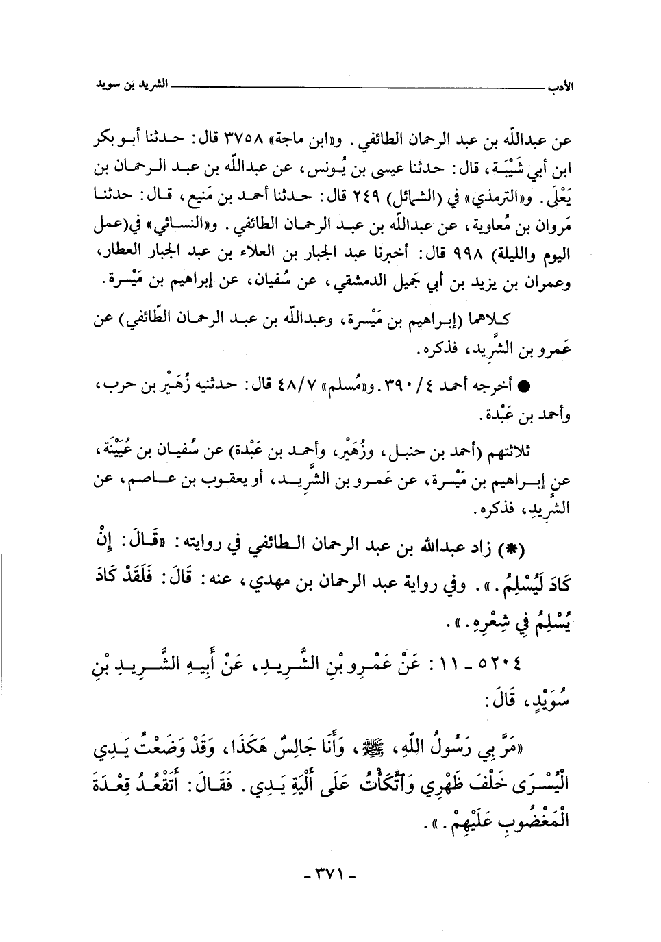 ٥٢٠٤ - عَنْ عَمْرِو بْنِ الشَّرِيدِ , عَنْ أَبِيهِ الشَّرِيدِ بْنِ سُوَيْدٍ , قَالَ:
