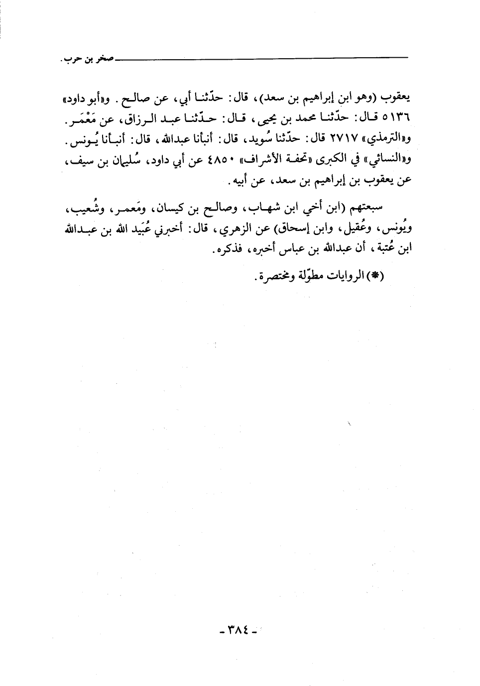 يعقوب، وهو ابن إبراهيم بن سَعد، حدّثنا أَبي، عن صالح و"أبو داود" ٥١٣٦ قال: حدّثنا محمد بن يحيى، قال: حدّثنا عبد الرَّزاق