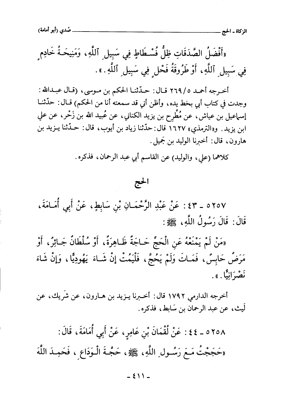 ٥٢٥٧ - عَنْ عَبْدِ الرَّحْمَانِ بْنِ سَابِطٍ , عَنْ أَبِى أُمَامَةَ , قَالَ: قَالَ رَسُولُ اللَّهِ , صلى الله عليه وسلم:
