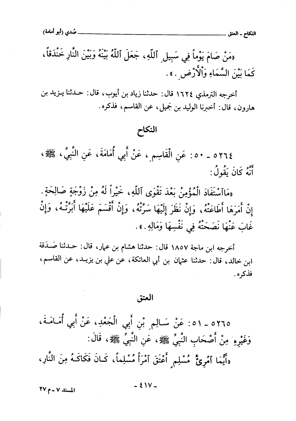 (*) قَالَ التِّرْمِذِيّ: هَذَا حَدِيثٌ غَرِيبٌ مِنْ حَدِيثِ أَبِى أُمَامَةَ.
