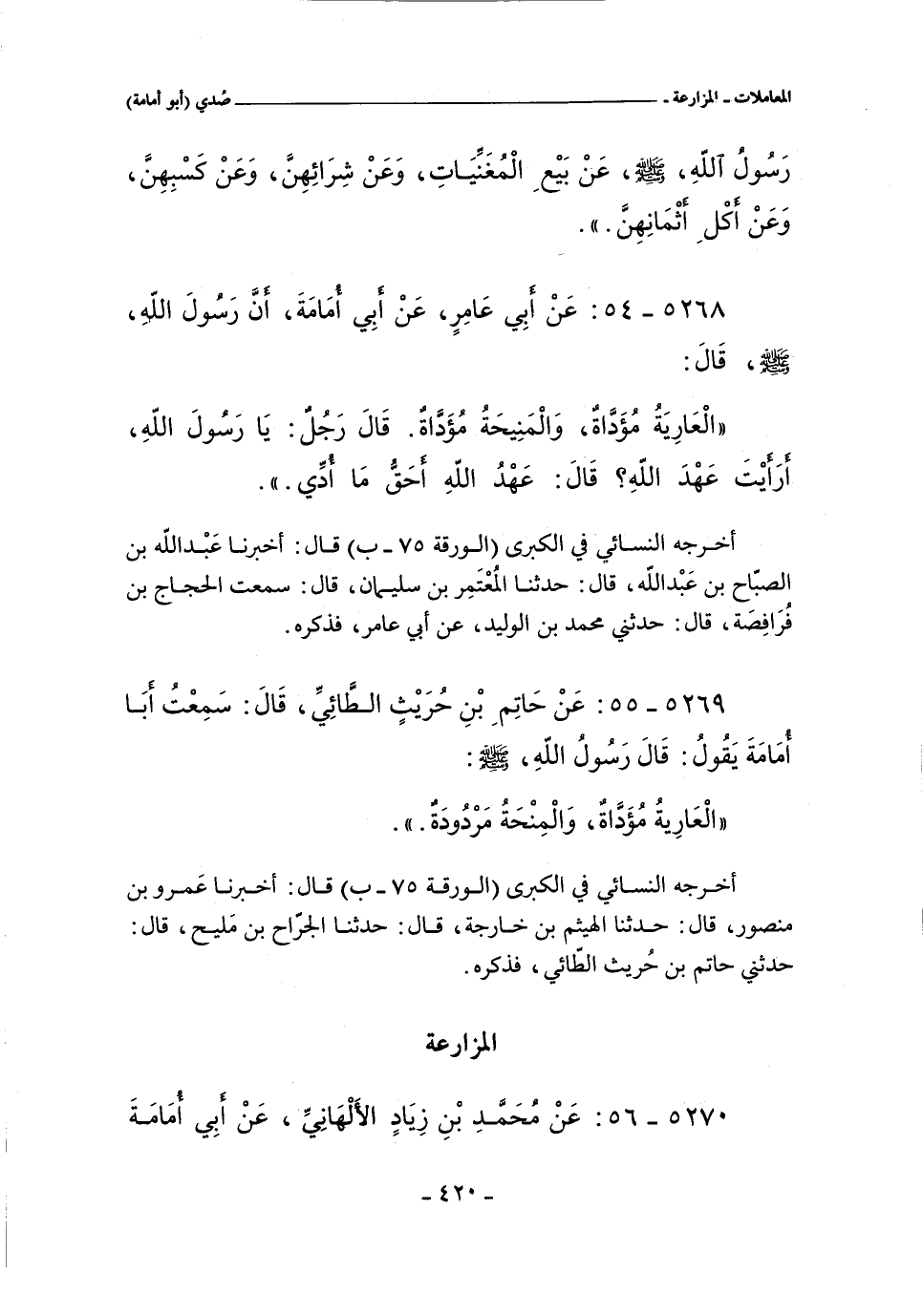 ٥٢٦٩ - عن حاتم بن حريث الطائي , قال: سمعت أبا أمامة يقول: قال رسول الله , صلى الله عليه وسلم:
