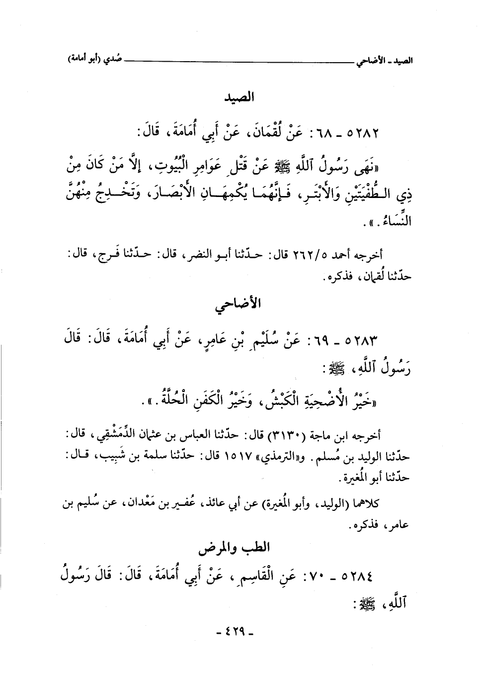 ٥٢٨٤ - عَنِ الْقَاسِمِ عَنْ أَبِى أُمَامَةَ قَالَ قَالَ رَسُولُ اللَّهِ صلى الله عليه وسلم: