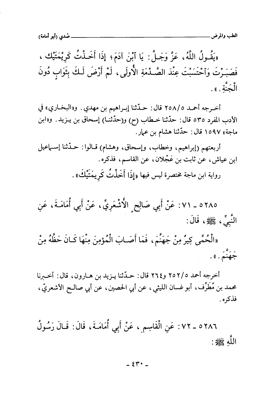٥٢٨٥ - عَنْ أَبِى صَالِحٍ الأَشْعَرِىِّ عَنْ أَبِى أُمَامَةَ عَنِ النَّبِىِّ صلى الله عليه وسلم قَالَ: