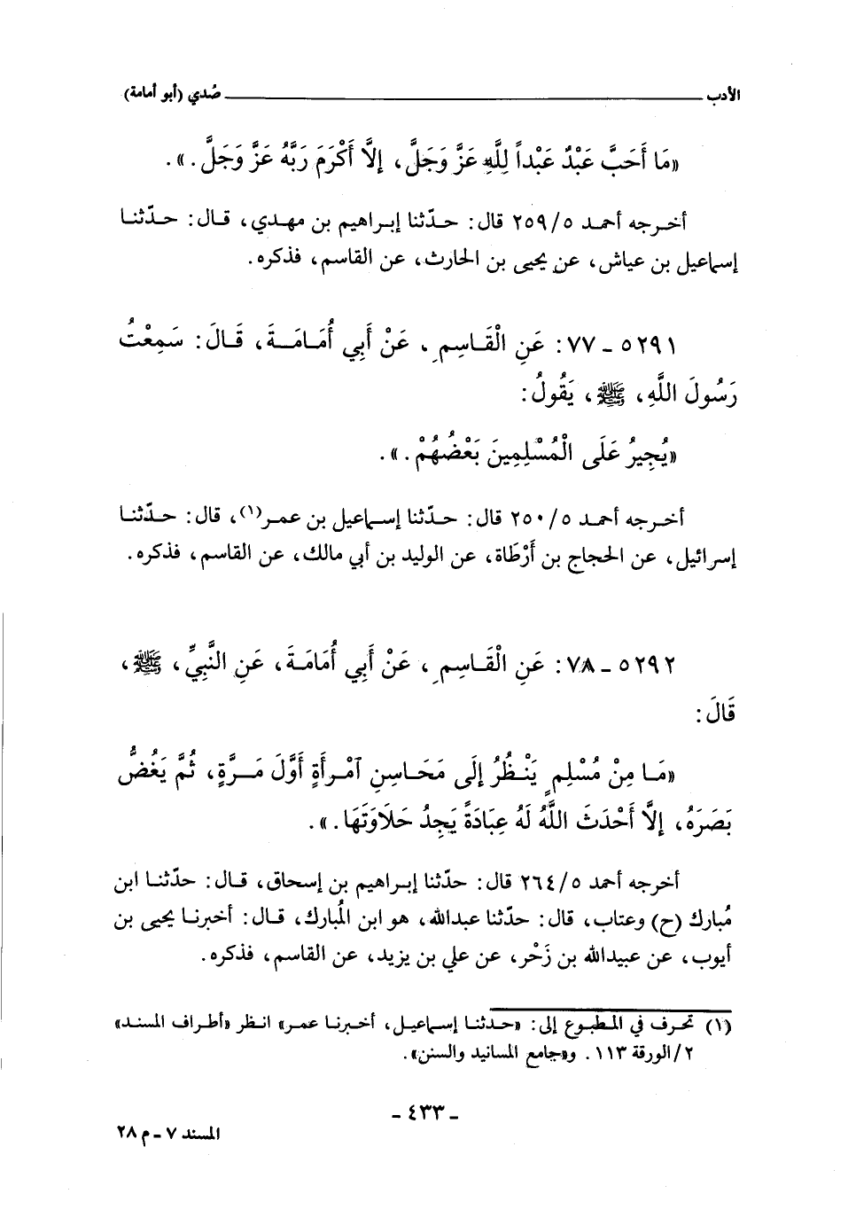 أخرجه أحمد ٥/ ٢٦٤ (٢٢٦٣٤) قال: حدّثنا إبراهيم بن إسحاق، حدّثنا ابن مُبارك (ح) وعتاب، قال: حدَّثنا عبد الله، هو ابن المُبارك، أخبرنا يحيى بن أيوب، عن عُبيد الله بن زَحْر، عن علي بن يزيد، عن القاسم، فذكره.