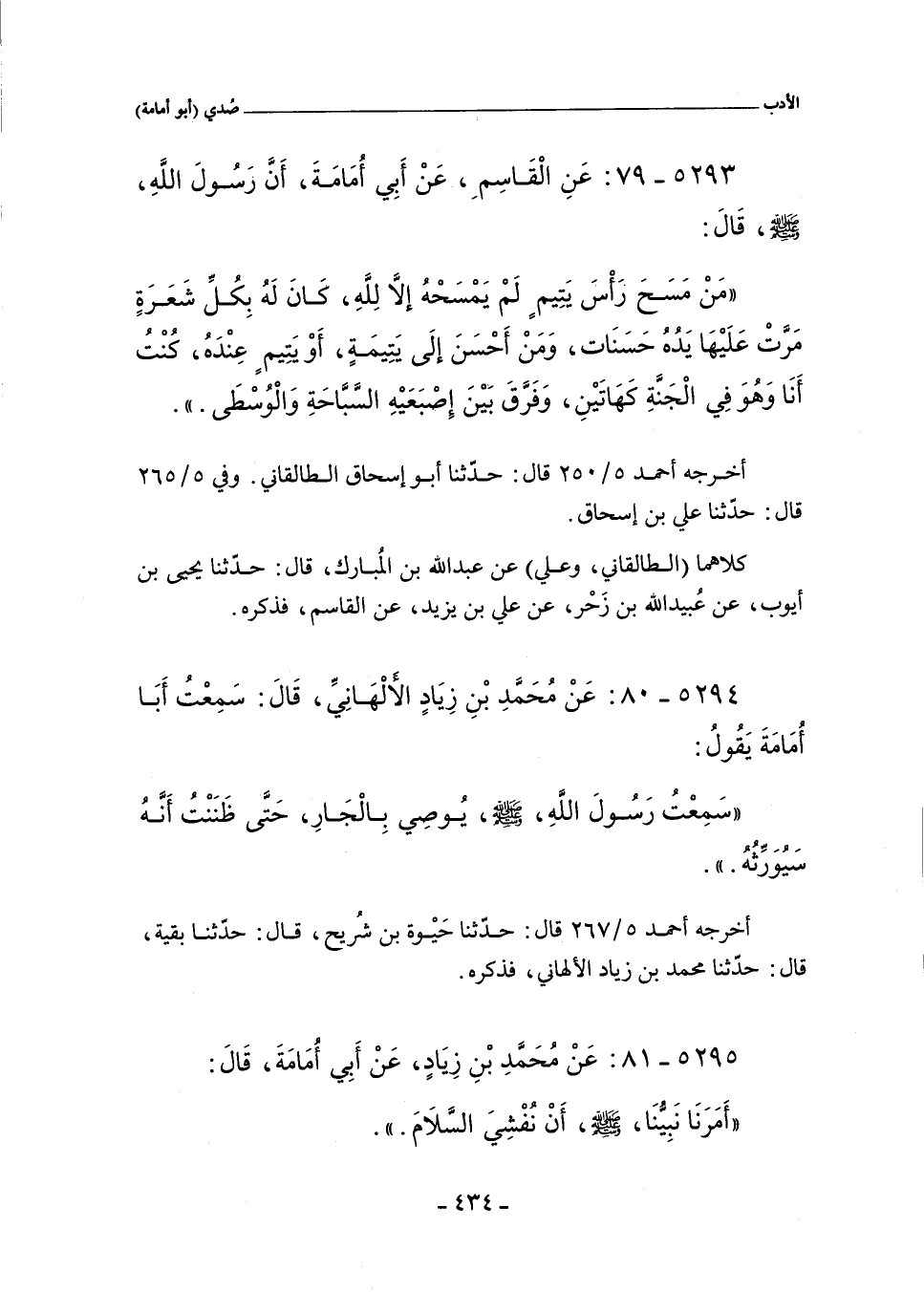٥٢٩٣ - عَنِ الْقَاسِمِ عَنْ أَبِى أُمَامَةَ أَنَّ رَسُولَ اللَّهِ صلى الله عليه وسلم قَالَ: