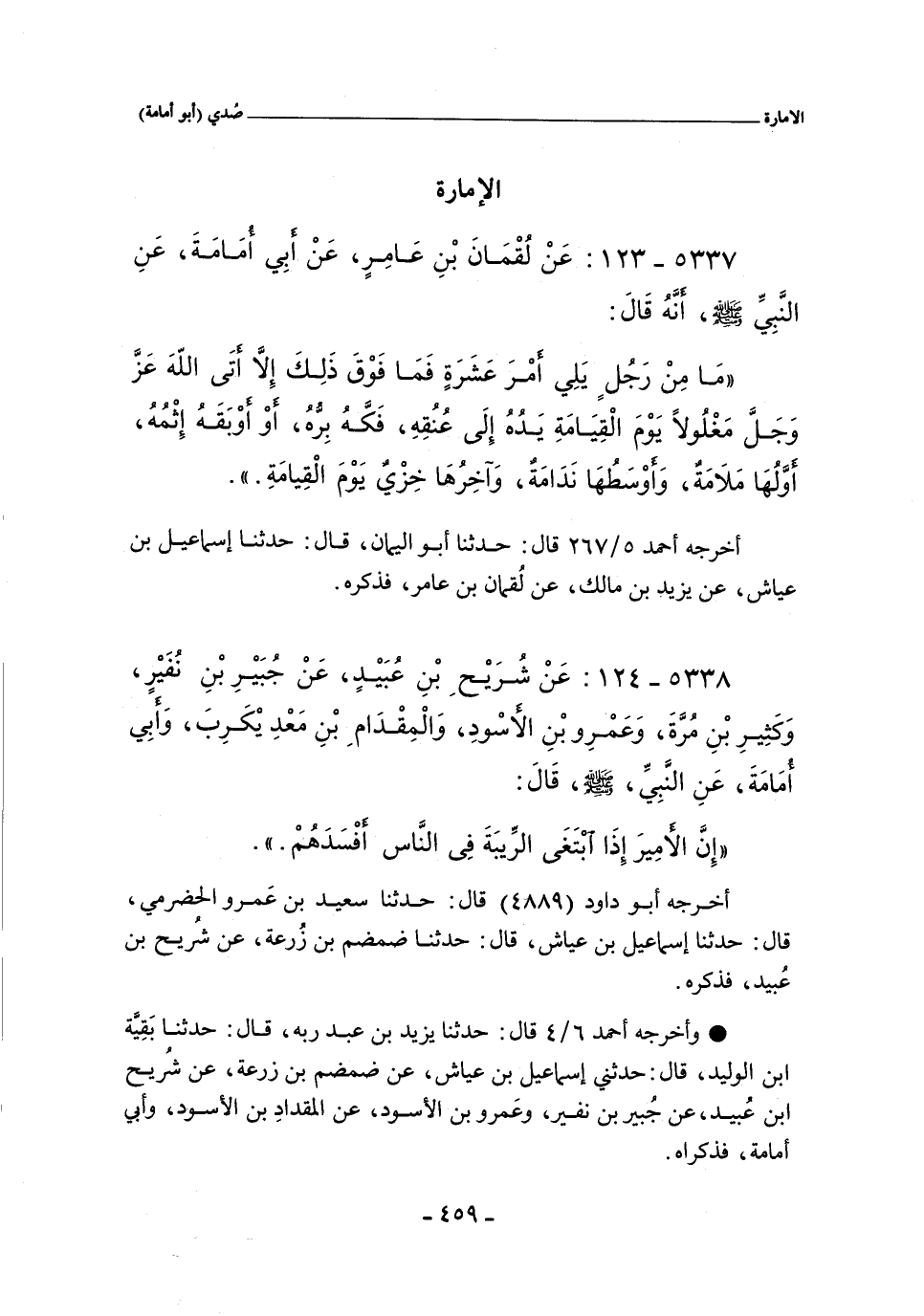 ٥٣٣٧ - عَنْ لُقْمَانَ بْنِ عَامِرٍ عَنْ أَبِى أُمَامَةَ عَنِ النَّبِىِّ صلى الله عليه وسلم أَنَّهُ قَالَ: