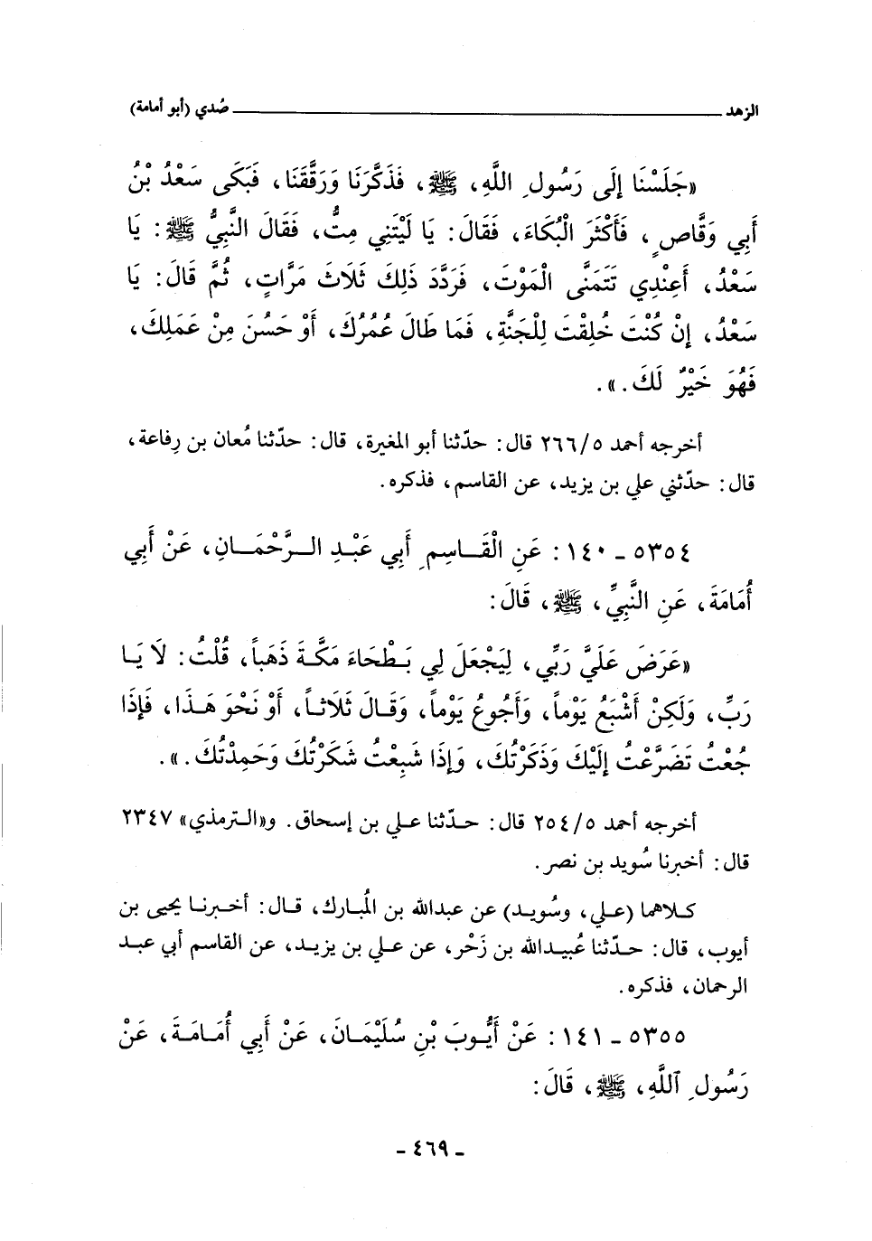 ٥٣٥٤ - عَنِ الْقَاسِمِ أَبِى عَبْدِ الرَّحْمَانِ عَنْ أَبِى أُمَامَةَ عَنِ النَّبِىِّ صلى الله عليه وسلم قَالَ: