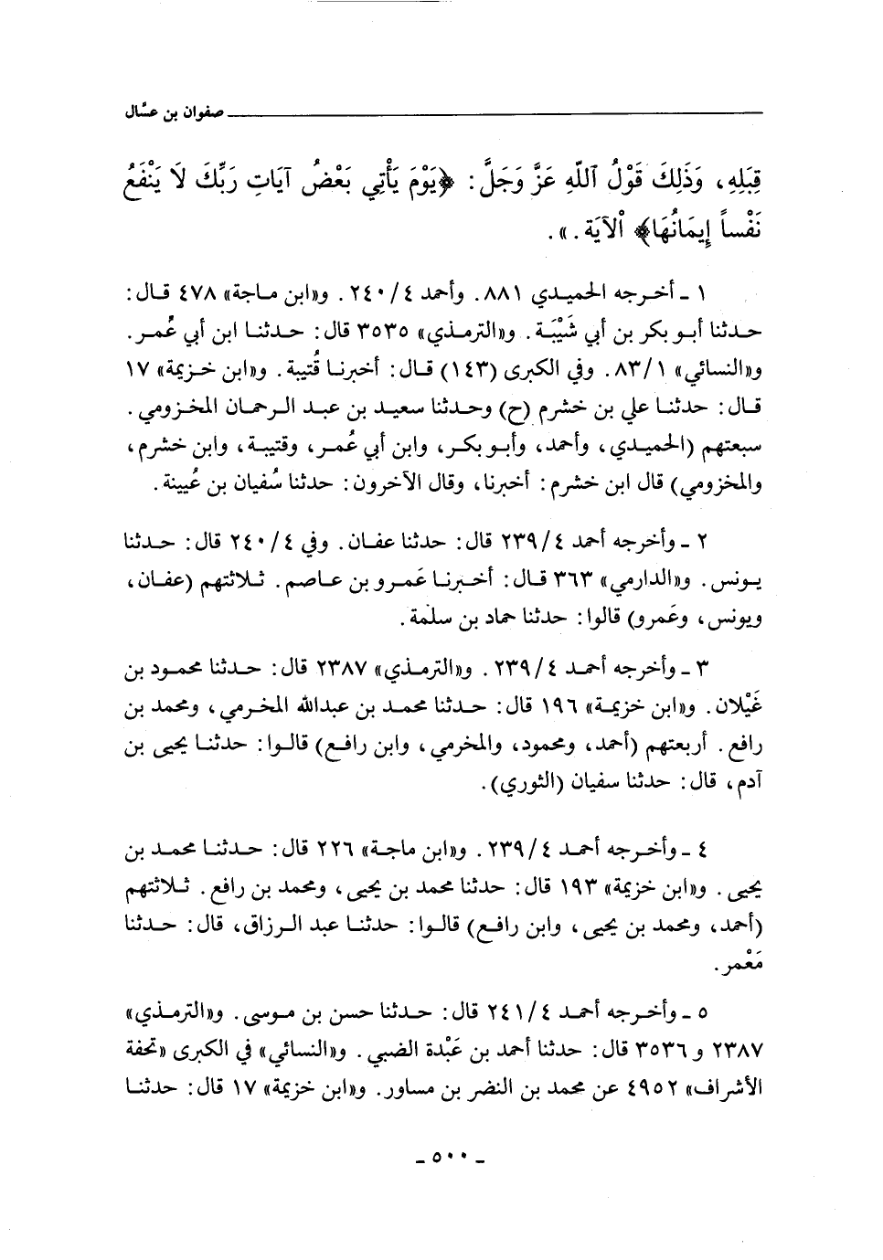 أخرجه الحُمَيدي ٨٨١ قال: حدّثنا سُفيان. و"أحمد" ٤/ ٢٤٠ (١٨٢٦٨ و ١٨٢٦٩ و ١٨٢٧٠ و ١٨٢٧١) قال: حدّثنا سُفيان بن عُيَينة. وفي ٤/ ٢٣٩ (١٨٢٥٨) قال: حدثنا عفان، حدثنا حَمَّاد بن سلمة. وفي ٤/ ٢٣٩ (١٨٢٦٠ و ١٨٢٦١) قال: حدّثنا يَحيى بن اَدم، حدّثنا سُفيان. وفي ٤/ ٢٣٩ و ٢٤٠ (١٨٢٦٣ و ١٨٢٦٤ و ١٨٢٦٥) قال: حدّثنا عبد الرَّزاق، حدّثنا مَعْمر. وفي ٤/ ٢٤٠ (١٨٢٧٥) قال: حدّثنا يونس، حدّثنا حَماد، يعني ابن سلمة. وفي ٤/ ٢٤١ (١٨٢٧٧ و ١٨٢٧٨ و ١٨٢٧٩) قال: حدّثنا حسن بن موسى، حدّثنا حَمَّاد بن زَيد. و"الدارِمِي" ٣٥٧ قال: أخبرنا عَمرو بن عاصم، حدّثنا حَمَّاد، هو ابن سلمة. و"ابن ماجة" ٢٢٦ قال: حدّثنا محمد بن يحيى، حدّثنا عبد الرَّزاق، أنبأنا مَعْمر. وفي (٤٧٨) قال: حدّثنا أبو بكر بن أبِي شَيْبة، حدّثنا سُفيان بن عُيَينة. وفي (٤٠٧٠) قال: حدّثنا أبو بكر بن أَبي شَيْبة، حدّثنا عُبيد الله بن مُوسى، عن إسرائيل. و (الترمذى) ٩٦ قال: حدثنا هناد، حدثنا أبو الأحوص. وفى (٢٣٨٧ و ٣٥٣٦) قال: حدثنا محمود بن غيلان، حدثنا يحيى بن آدم، حدثنا سفيان. وفى (٢٣٨٧ و ٣٥٣٦) قال: حدثنا أحمد بن عبده الضبي، حدثنا حَمَّاد بن زَيد. وفي (٣٥٣٥) قال: حدّثنا ابن أبي عُمر، حدّثنا سُفيان. و"النسائي) ١/ ٨٣، وفي "الكبرى" ١٤٤ قال: أخبرنا أحمد بن سليمان الرُّهاوي. قال: حدّثنا يَحيى بن اَدم. قال: حدّثنا سُفيان الثوري، ومالك بن مِغول، وزُهير، وأبو بكر بن عياش، وسفيان بن عيينة. وفى ١/ ٩٨ قال: أخبرنا عمرو بن على، وإسماعيل بن مسعود. قالا: حدثنا يزيد بن زريح. قال: حدثنا شعبة. وفى "الكبرى" ١١١١٤ قال: أخبرنا محمد بن النفر بن مُساور، حدّثنا حَمَّاد. و"ابن خزيمة" ١٧ قال: حدّثنا أحمد