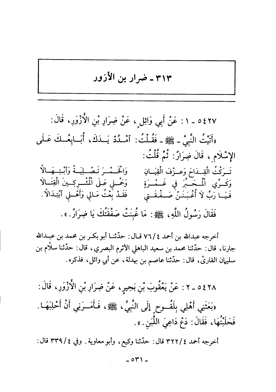 ٥٤٢٨ - عَنْ يَعْقُوبَ بْنِ بَحِيرٍ عَنْ ضِرَارِ بْنِ الأَزْوَرِ قَالَ: