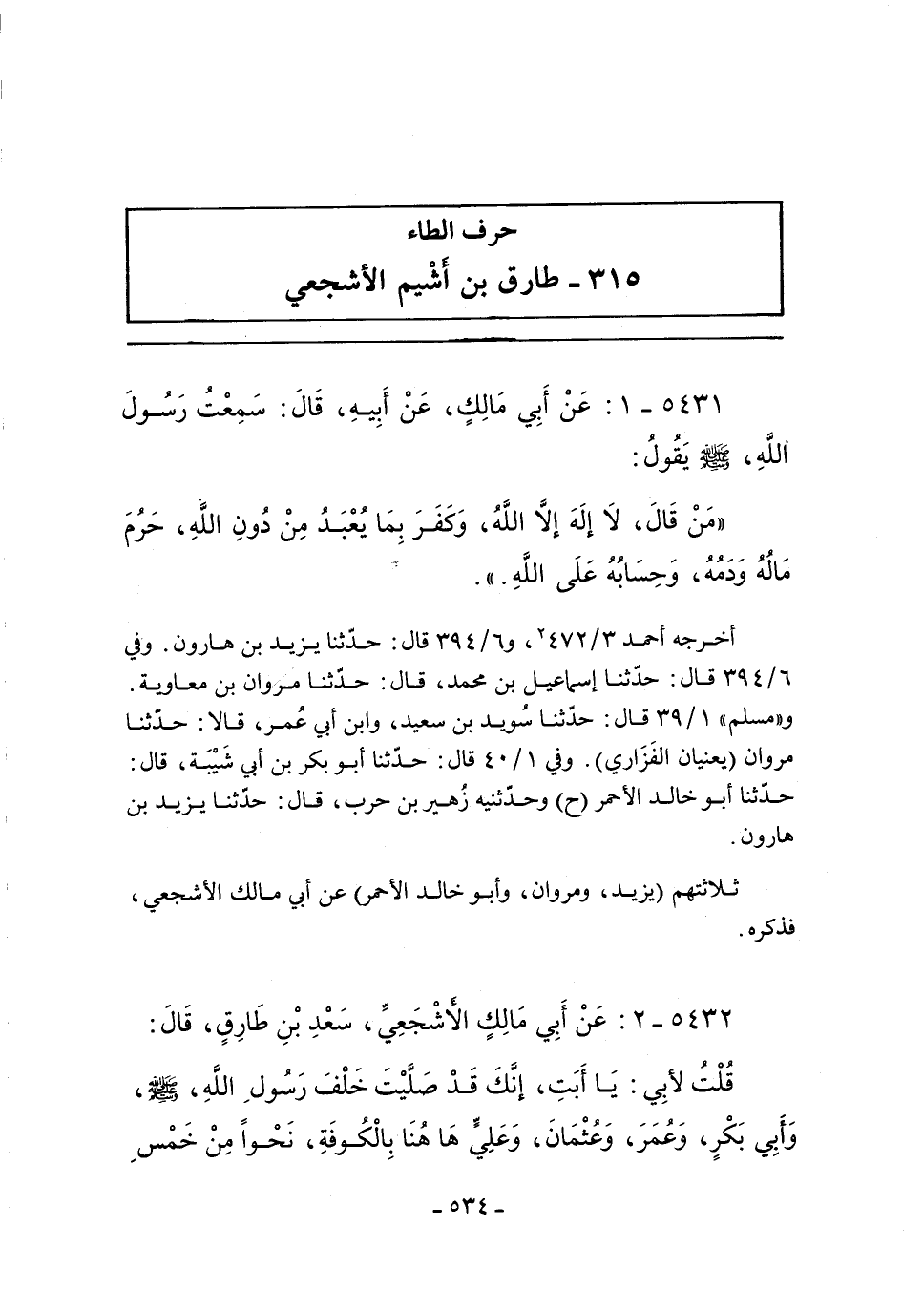 (*) عقب رواية يزيد بن هارون، قال أحمد بن حنبل: حدَّثنا به يزيد بواسط، وبغداد، قال: سَمِعَ النبِي صلى الله عليه وسلم - يعني طارق بن أَشيَم.
