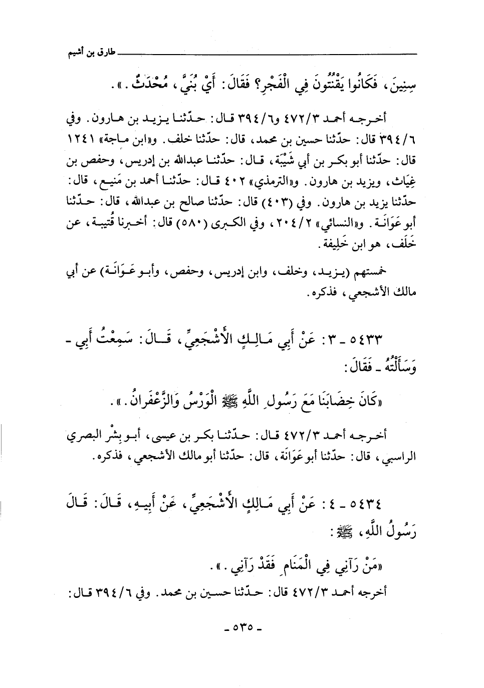 (*) قال التِّرمِذي: أبو مالك الأشجعي، اسمه: سَعد بن طارق بن أَشيَم.
