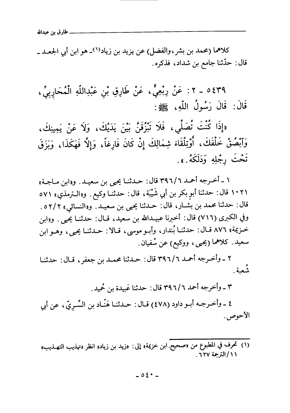 ٥٤٣٩ - عَنْ رِبْعِىٍّ عَنْ طَارِقِ بْنِ عَبْدِ اللهِ الْمُحَارِبِىِّ قَالَ قَالَ رَسُولُ الله صلى الله عليه وسلم: