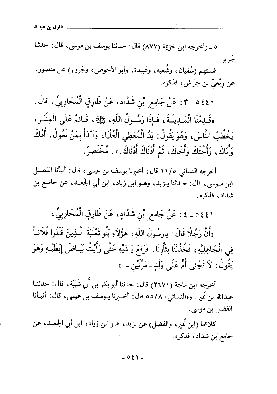 ٥٤٤١ - عَنْ جَامِعِ بْنِ شَدَّادٍ , عَنْ طَارِقٍ الْمُحَارِبِىِّ ,