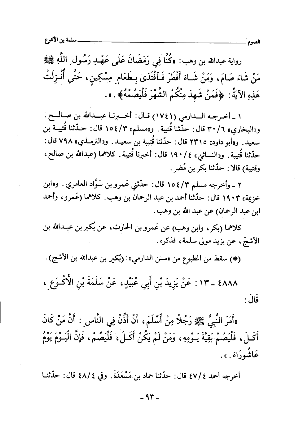 أخرجه الدارمي (١٧٣٤) قال: أخبرنا عبد الله بن صالح، حدَّثني بكر، هو ابن مُضَر. و"البُخَارِي" ٦/ ٣٠ (٤٥٠٧) قال: حدثنا قُتَيْبَة، حدثنا بكر بن مُضَر. و"مسلم"٣/ ١٥٤ (٢٦٥٥) قال: حدثنا قُتَيْبَة بن سعيد، حدثنا بكر، يعني ابن مُضَر. وفي ٣/ ١٥٤ (٢٦٥٦) قال: حدئني عَمرو بن سَواد العامري، أخبرنا عبد الله بن وَهْب. و"أبو داود" ٢٣١٥ قال: حدثنا قُتَيْبَة بن سعيد، حدثنا بكر، يعني ابن مُضَر. والتِّرْمِذِيّ" ٧٩٨ قال: حدثنا قُتَيْبَة، حدثنا بكر بن مُضَر. و (النساني) ٤/ ١٩٠، وفي "الكبرى" ٢٦٣٧ و ١٠٩٥٠ قال: أخبرنا قُتَيبة , قال: أنبأنا بكر، وهو ابن مُضَر. و"ابن خزيمة" ١٩٠٣ قال: حدثنا أحمد بن عبد الرحمن بن وَهب، حدثنا عَمِّي.