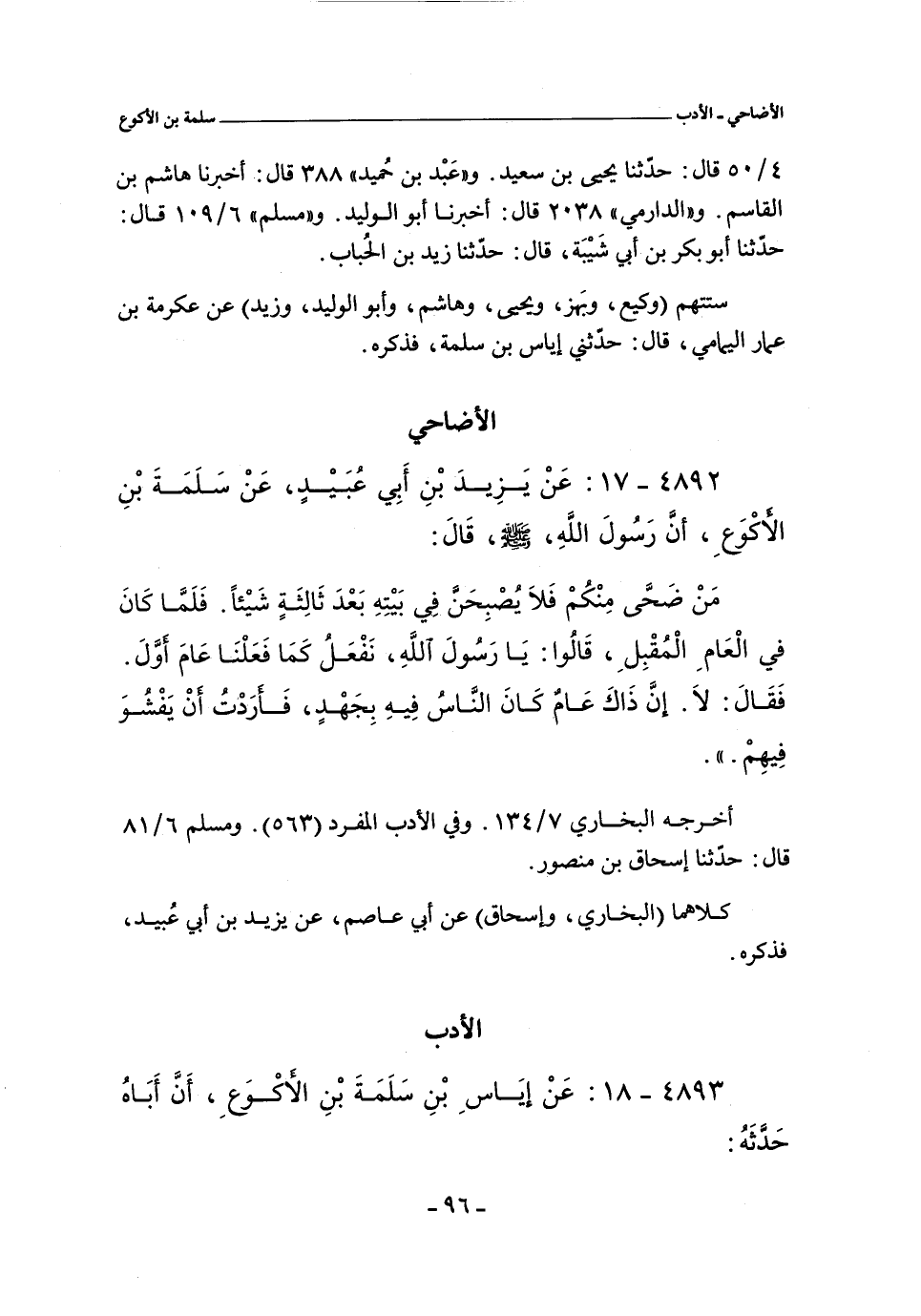 ٤٨٩٣ - عن إياس بن سلمة بن الأكوع , أن أباه حدثه؛