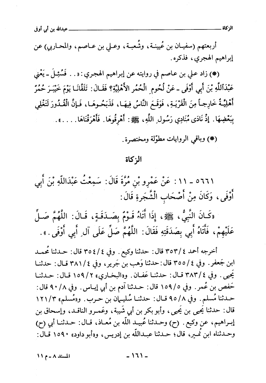 ٥٦٦١ - عَنْ عَمْرِو بْنِ مُرَّةَ قَالَ سَمِعْتُ عَبْدَ اللَّهِ بْنَ أَبِى أَوْفَى وَكَانَ مِنْ أَصْحَابِ الشَّجَرَةِ قَالَ: