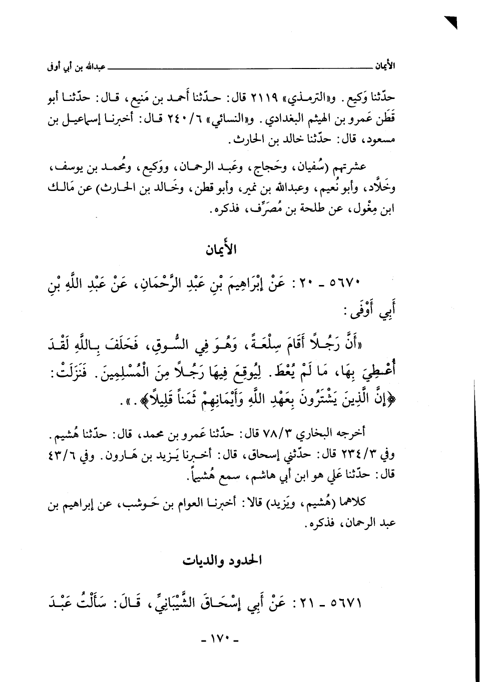 ٥٦٧٠ - عَنْ إِبْرَاهِيمَ بْنِ عَبْدِ الرَّحْمَنِ عَنْ عَبْدِ اللَّهِ بْنِ أَبِى أَوْفَى رضى الله عنه؛