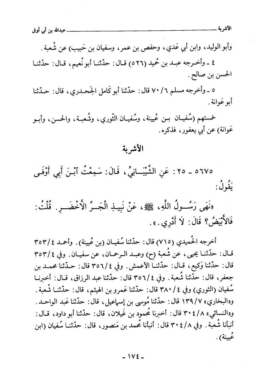 ٥٦٧٥ - عَنِ الشَّيْبَانِىِّ قَالَ سَمِعْتُ ابْنَ أَبِى أَوْفَى يَقُولُ: