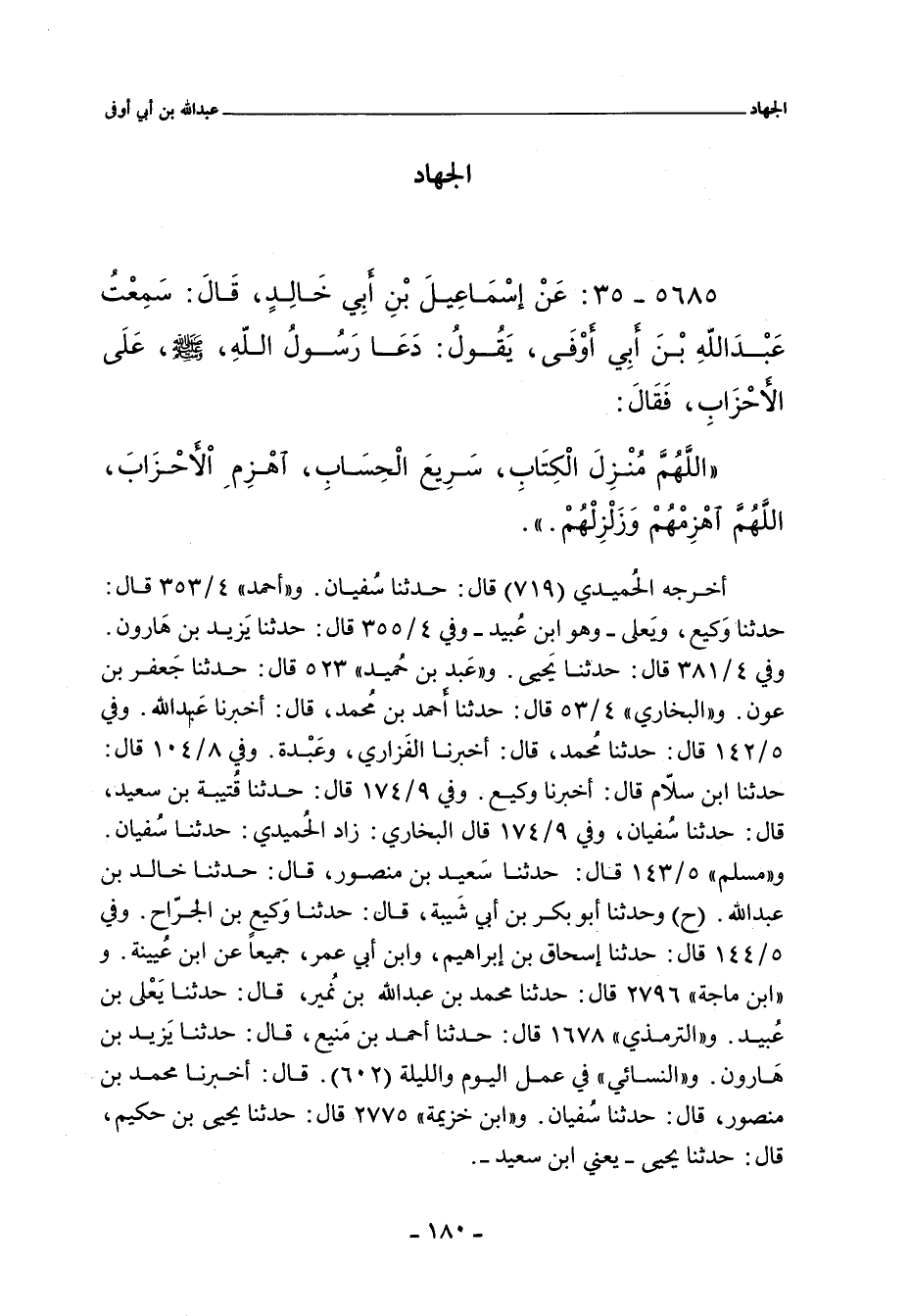 ٥٦٨٥ - عَنْ إسماعيل بْنِ أَبِى خَالِدٍ , قَالَ: سَمِعْتُ عَبْدَ اللَّهِ بْنَ أَبِى أَوْفَى , يَقُولُ: