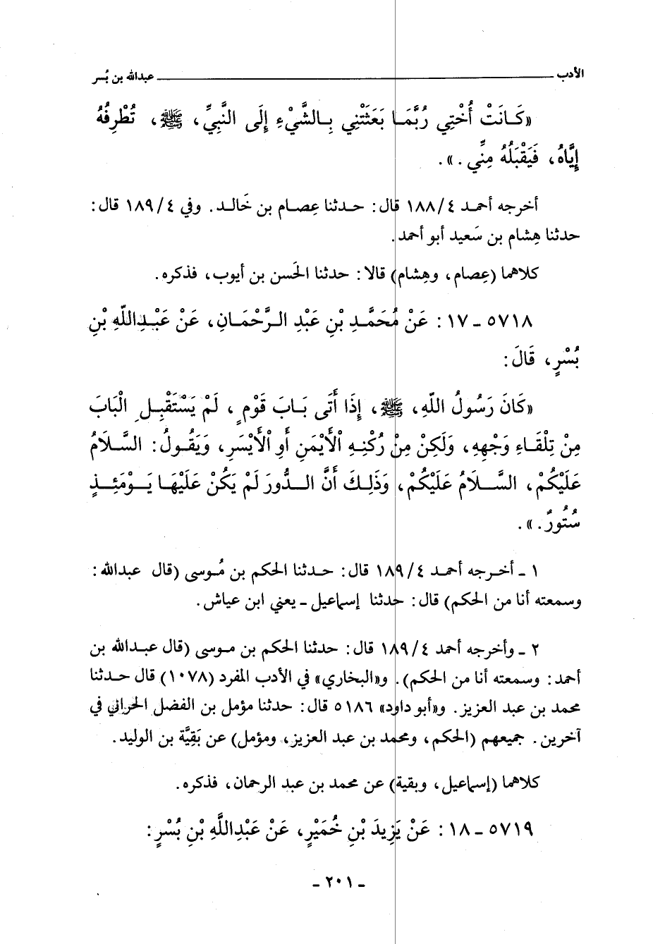 ٥٧١٨ - عَنْ مُحَمَّدِ بْنِ عَبْدِ الرَّحْمَنِ عَنْ عَبْدِ اللَّهِ بْنِ بُسْرٍ قَالَ: