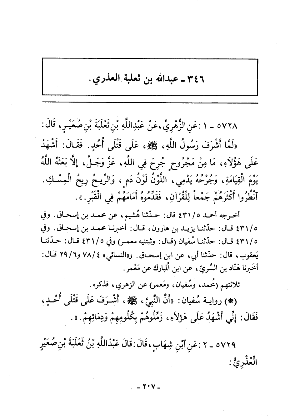 ٣٤٦ - عَبْدُ اللهِ بْنُ ثَعْلَبَةَ بْنِ صُعَيْرٍ الْعُذْرِيُّ