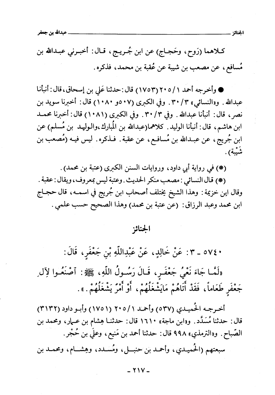 لَمَّا جَاءَ نَعْىُ جَعْفَرٍ قَالَ رَسُولُ اللَّهِ صلى الله عليه وسلم اصْنَعُوا لآلِ جَعْفَرٍ طَعَامًا فَقَدْ أَتَاهُمْ مَا يَشْغَلُهُمْ أَوْ أَمْرٌ يَشْغَلُهُمْ.