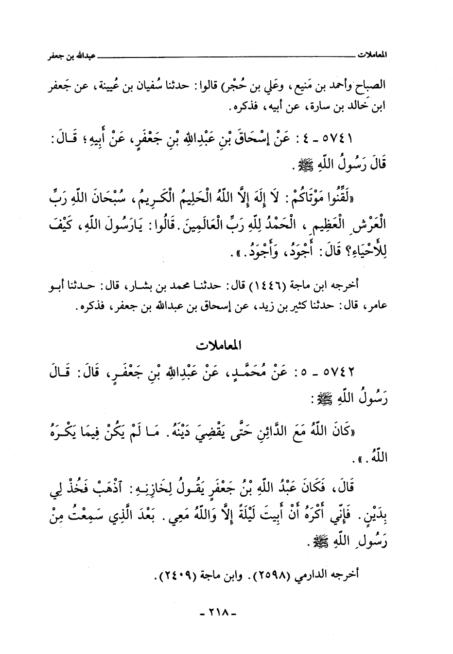 الصَّباح، وأحمد بن مَنِيع، وعلي بن حُجر) عن سُفيان بن عُيَينَة، عن جعفر بن خالد بن سارة، عن أبيه، فذكره.