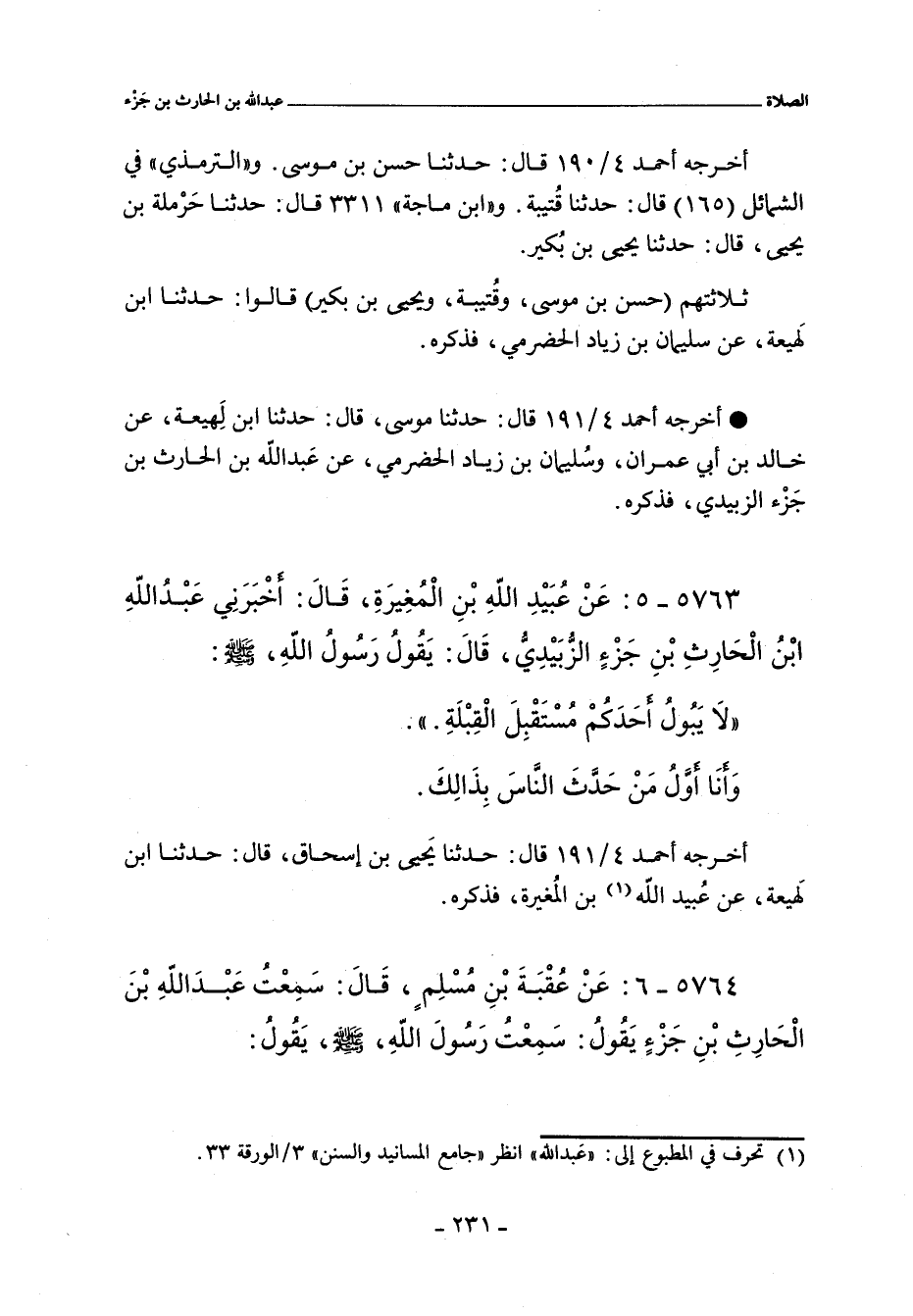 - أخرجه أحمد ٤/ ١٩١ (١٧٨٦١) قال: حَدَّثَنَا مُوسَى , حَدَّثَنَا ابْنُ لَهِيعَةَ , عَنْ خَالِدِ بْنِ أَبِى عِمْرَانَ , وَسُلَيْمَانَ بْنِ زِيَادٍ الْحَضْرَمِىِّ , عَنْ عَبْدِ اللَّهِ بْنِ الْحَارِثِ بْنِ جَزْءٍ الزُّبَيْدِىِّ , فذكره.