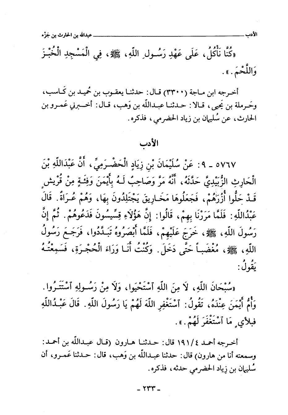 ٥٧٦٧ - عَنْ سُلَيْمَانَ بْنَ زِيَادٍ الْحَضْرَمِىَّ , أَنَّ عَبْدَ اللَّهِ بْنَ الْحَارِثِ الزُّبَيْدِىَّ حَدَّثَهُ؛