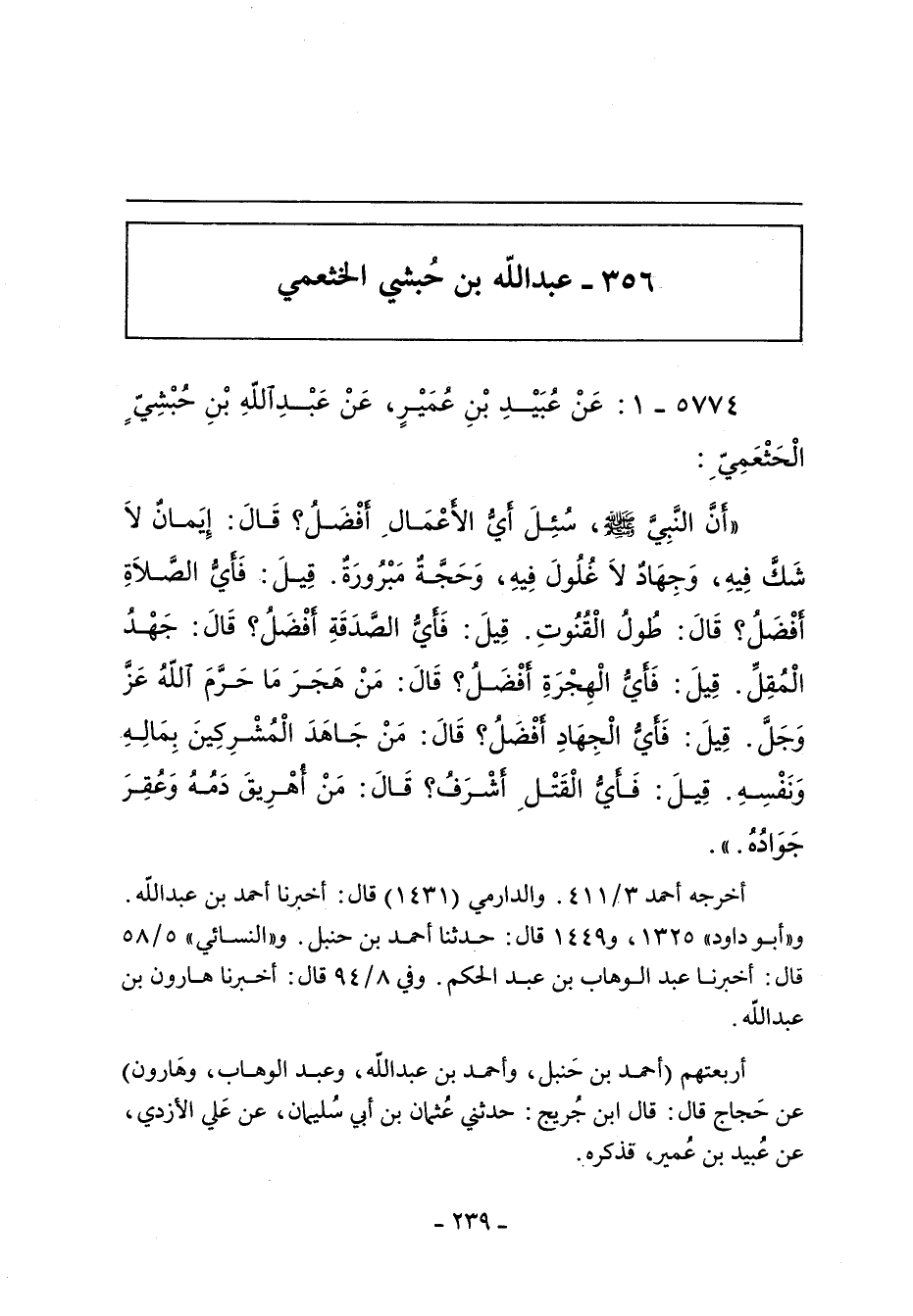 ٥٧٧٤ - عَنْ عُبَيْدِ بْنِ عُمَيْرٍ عَنْ عَبْدِ اللَّهِ بْنِ حُبْشِىٍّ الْخَثْعَمِىِّ؛