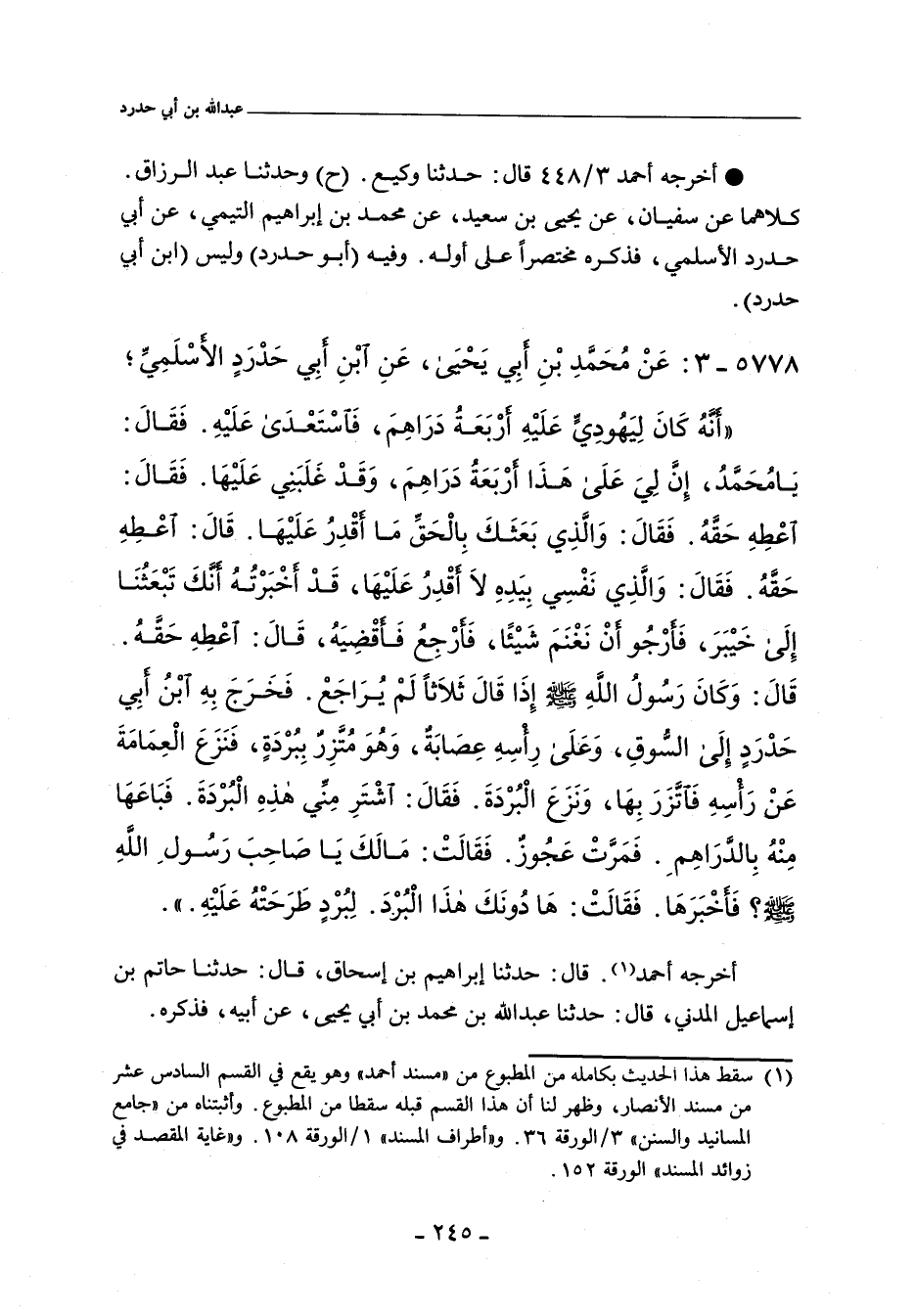 ٥٧٧٨ م ١ - عَنْ مُحَمَّدِ بْنِ أَبِى يَحْيَى , عَنِ ابْنِ أَبِى حَدْرَدٍ الأَسْلَمِىِّ؛