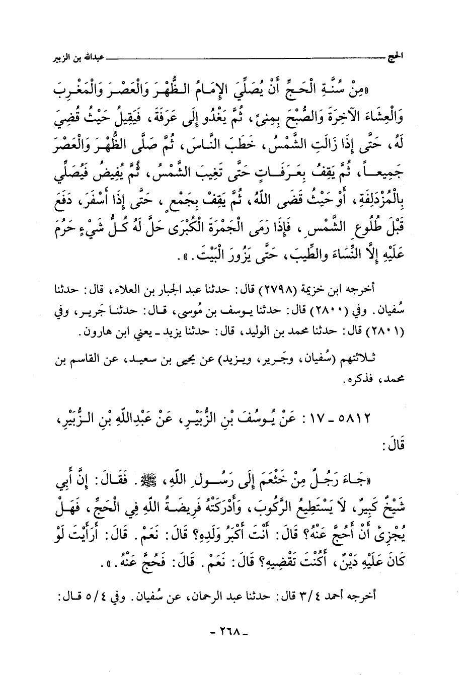 ٥٨١٢ - عَنْ يُوسُفَ بْنِ الزُّبَيْرِ عَنْ عَبْدِ اللَّهِ بْنِ الزُّبَيْرِ قَالَ: