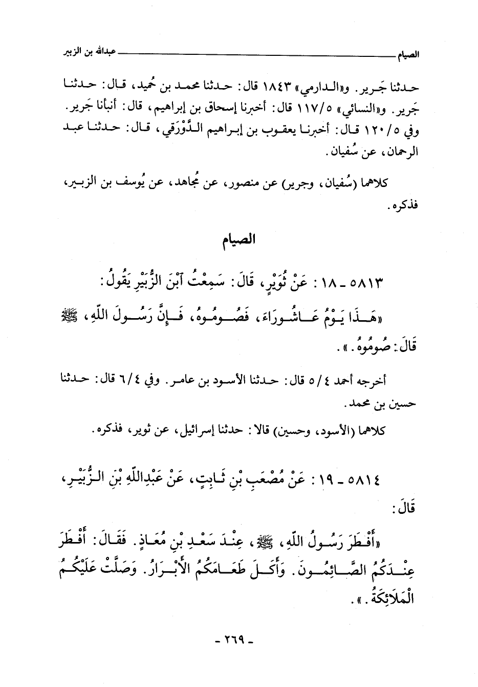 ٥٨١٤ - عَنْ مُصْعَبِ بْنِ ثَابِتٍ عَنْ عَبْدِ اللَّهِ بْنِ الزُّبَيْرِ قَالَ: