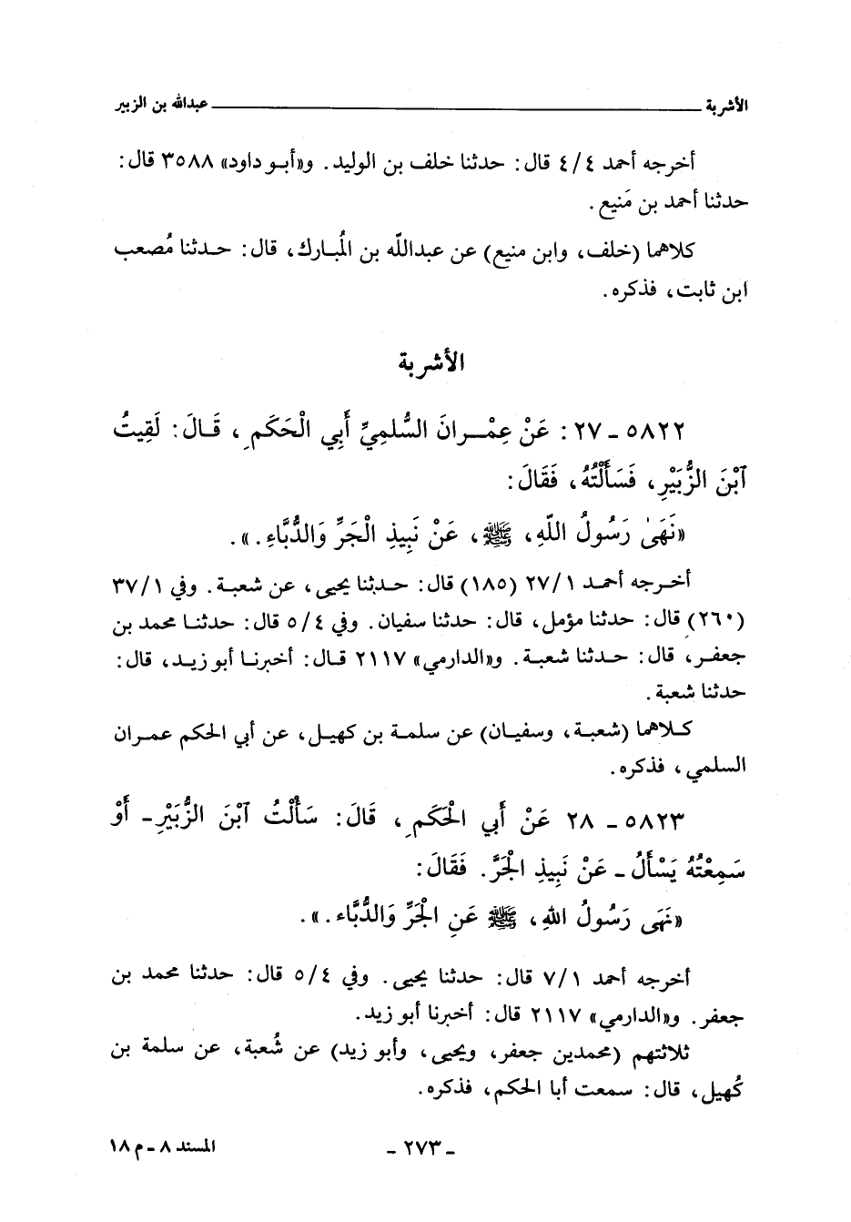 ٥٨٢٢ - عن عمران السلمي أبي الحكم، قال: لقيت ابن الزبير , فسألته , فقال: