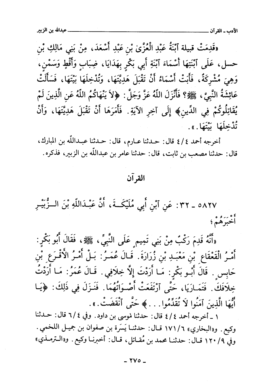 ٥٨٢٧ - عَنِ ابْنِ أَبِى مُلَيْكَةَ أَنَّ عَبْدَ اللَّهِ بْنَ الزُّبَيْرِ أَخْبَرَهُمْ؛