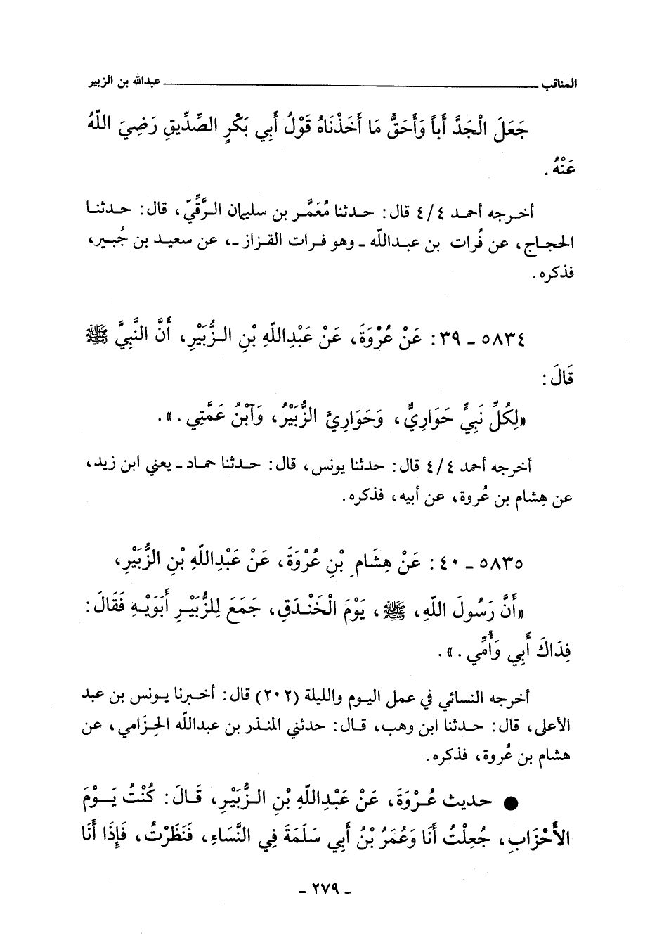 ٥٨٣٥ - عَنْ هِشَامِ بْنِ عُرْوَةَ، عَنْ عَبْدِ اللهِِ بْنِ الزُّبَيْرِ؛