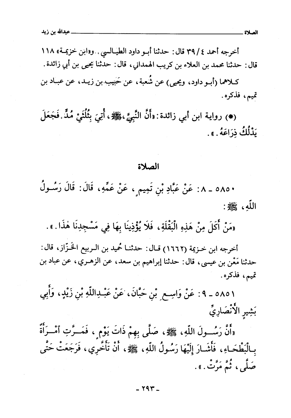 - رواه محمد بن جعفر، عن شعبة، عن حبيب بن زيد، عن عباد بن تميم، عن جَدته أُم عُمارة بنت كعب، عن النبي صلى الله عليه وسلم، وسيأتي، إن شاء الله تعالى، في مسند أم عُمارة رضي الله تعالى عنها، الحديث رقم , الحديث رقم (.