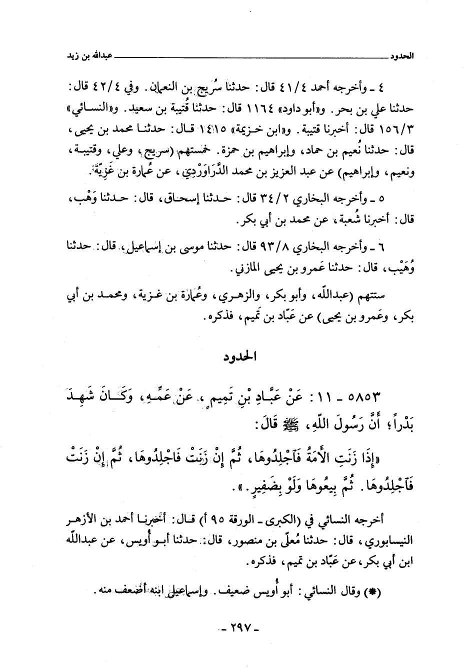 أخرجه النسائي في "الكبرى" ٧٢٠٠ قال: أخبرنا أحمد بن الأزهر النيسابوري , قال: حدثنا معلى بن منصور. قال: حدثنا أبو أُويس، عن عبد الله بن أبِي بكر، عن عَباد بن تَميم، فذكره.